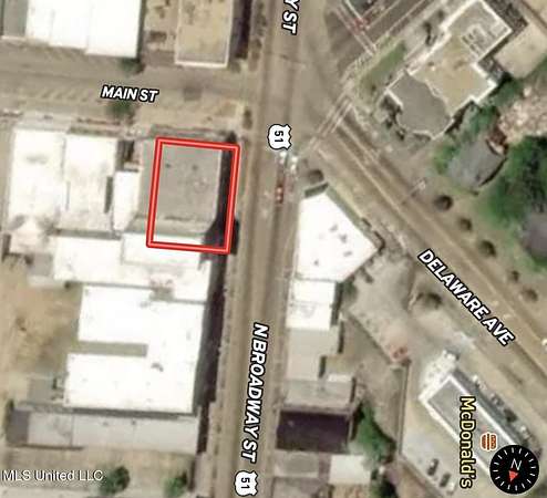 Corner lot at Main St and Highway 51 in McComb, MS, measuring 0.17+/- acres (75'x100'). Prime visibility with MDOT reporting over 3,500 daily vehicles on Highway 51, plus additional traffic along Main St. Previously improved with 20,195+/- sq.ft. before a roof collapse, the property now contains the main stairwell, portions of rooms, and exterior walls. Excellent redevelopment potential in the C-3 Central Business District, ideal for retail, office, restaurant, or mixed-use construction. Situated at a high-traffic corner in the heart of town, this site offers strong exposure, convenient access, and proximity just over an hour south of Jackson, MS, and less than 2 hours from New Orleans, LA.