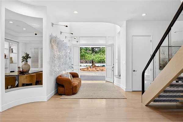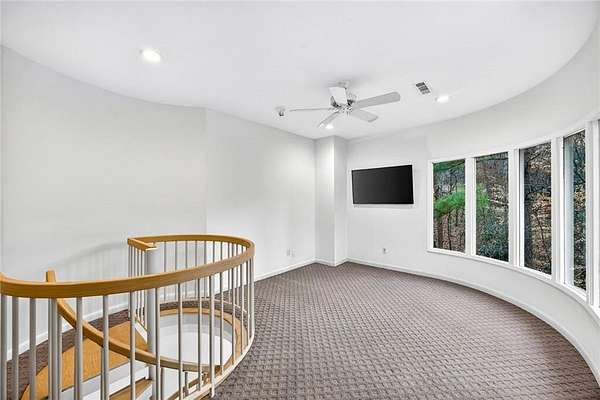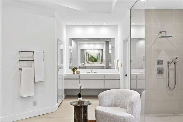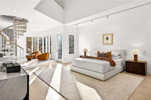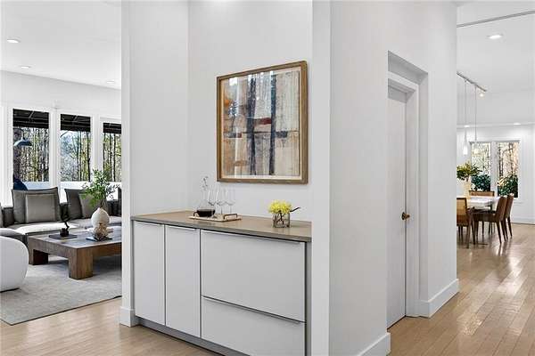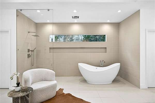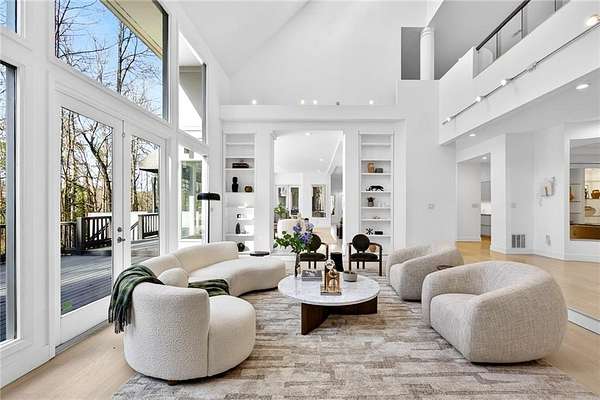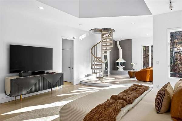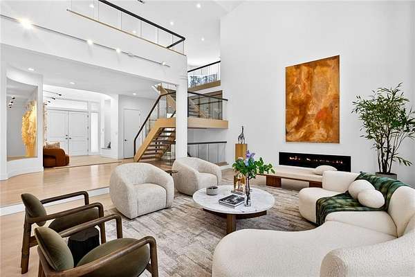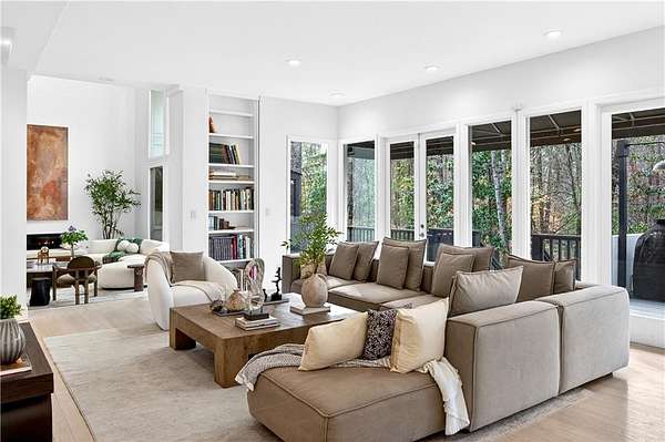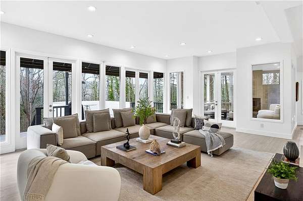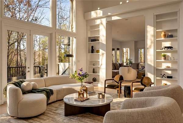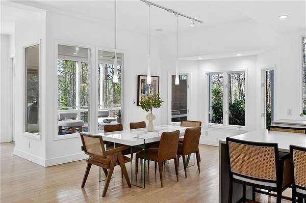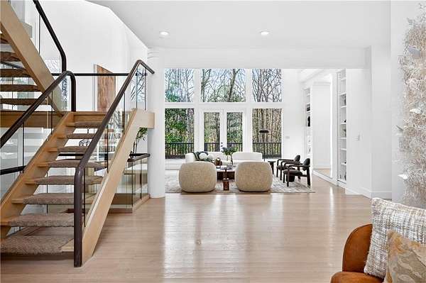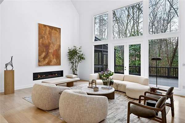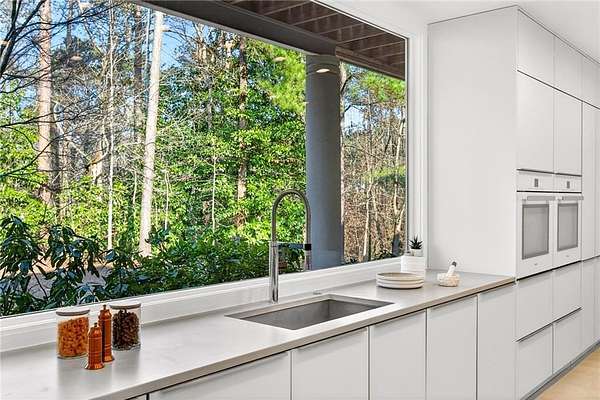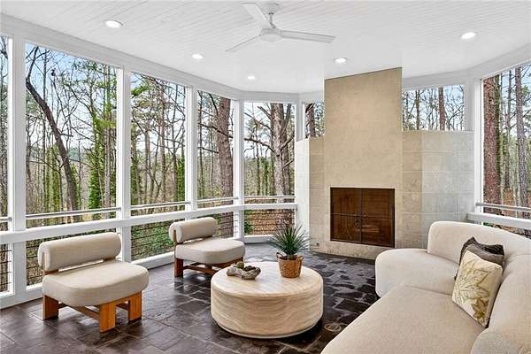 Set behind a quiet cul-de-sac on 2.65 acres of supremely private, wooded grounds, this striking modernist residence-designed by Colin Lichtenstein-is a rare architectural offering in the heart of Sandy Springs. Constructed with structural steel elements and hardcoat stucco, the home embodies timeless modernism with enduring structural integrity and a refined, minimalist aesthetic. Beautifully renovated interiors unfold with clean lines and abundant natural light, pouring through oversized windows that frame the surrounding canopy of mature trees. The main level is thoughtfully composed for both everyday living and grand-scale entertaining, featuring a dramatic two-story fireside great room, formal dining room, and a sleek modern kitchen-designed by the German Kitchen Center Atlanta, featuring bespoke Leicht cabinetry, premium Miele appliances, a double oven, and integrated dishwasher- that opens seamlessly to an eat-in breakfast room and generous keeping room. A private home office, laundry room, and both formal and informal powder rooms are conveniently located on the main level. Indoor and outdoor living are effortlessly intertwined, with nearly every main-level room opening to two screened-in porches-one with a fireplace-and a rear deck overlooking the tranquil, wooded landscape. The primary suite on the main level is a true sanctuary, offering a fireside sitting room and a sculptural spiral staircase leading to a private loft retreat. The spa-inspired primary bath is exquisitely appointed with oversized large format tile flooring, a spacious wet room with floating soaking tub and frameless glass shower, dual vanities, dual water closets, and dual wardrobes designed for uncompromising luxury. Upstairs, four ensuite bedrooms and an open-concept bonus space provide flexibility for family living and guests alike. The finished terrace level offers expansive rooms ready for customization-ideal for a home cinema, fitness studio, recreation spaces, additional bedroom, and abundant storage. A four-car garage, estate-sized lot, and exceptional privacy distinguish this property. Ideally located within the Heards Ferry Elementary and Riverwood High School districts, and surrounded by neighboring estate lots, this residence offers a rare combination of architectural pedigree, natural serenity, supreme privacy, and premier intown convenience.