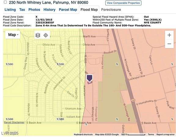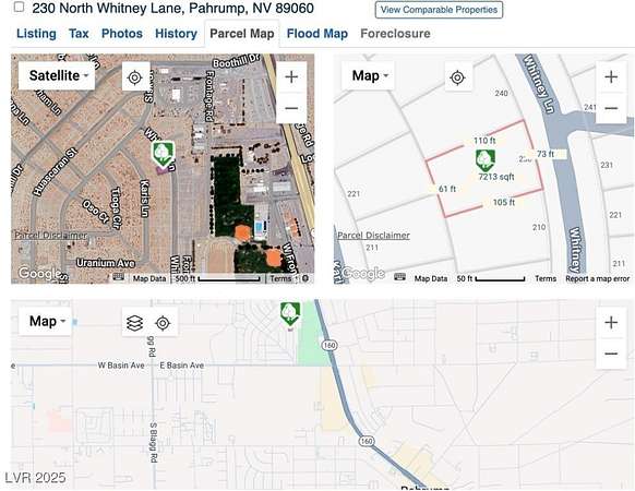 From HWY 160 take through Downtown Pahrump. Turn left on Basin Ave. Turn right on Whitney Lane. Go about a block and lot will be on the left side of street; in line with a planned cul-de-sac on the right.