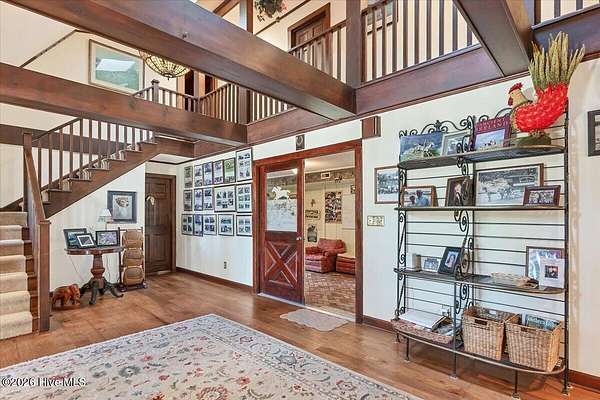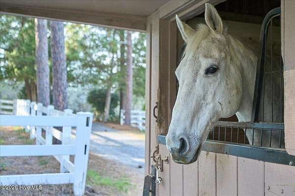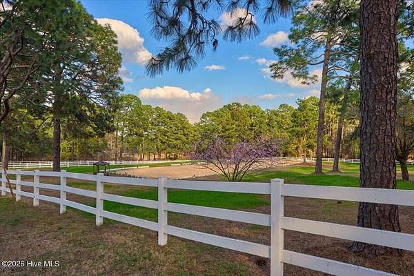 Never Better Farm boasts all of the amenities of true equestrian living in the heart of Horse Country. The prime location is in close proximity to both the Walthour-Moss Foundation as well as Weymouth Preserve and just a short drive to downtown Southern Pines. Two parcels are being sold, the main home and farm(00040903) at 11.04 acres and vacant land 00040903 at 6.45 acres. After a day of riding in the dressage ring or sailing over the jumps on the lower parcel, enjoy a dip in the pool over looking beautiful pastures and vibrant landscaping. A true working farm, the property is anchored by 2 barns and a detached garage with 4 garage units and covered equipment shelter, perfect for plenty of storage or any farm projects that may need to be done. The barn closest to the home has 4 stalls, a laundry room and a dedicated wash rack. The second barn has 6 stalls and feed storage. Rich in Moore County history, part of the home used to be the property's original peach barn. Now a gorgeous multi-generational home, the property has one bedroom downstairs and 3 upstairs including the primary. Each bedroom has a private bathroom which also makes it exceptional for guests. This home is ideal for entertaining with a large living room featuring 17 foot vaulted ceilings, a wet bar and great indoor/outdoor living leading out to the pool. One of the most unique features of this home is the stunning brick floored tack room that is nestled in the center and leads out to a private grass covered patio. The buyer of this incredible estate will truly enjoy every aspect of this property, life here is ''Never Better.''