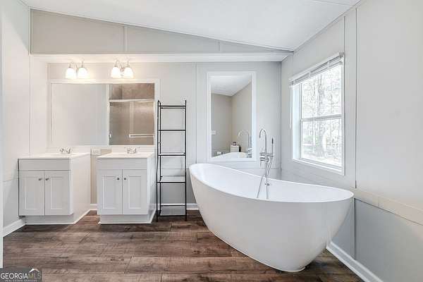 - Double Vanity, Separate Shower, Soaking Tub, Split Bedroom Plan, Tile Bath, Vaulted Ceiling(s), Walk-In Closet(s)