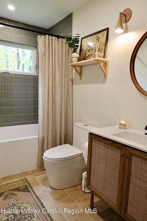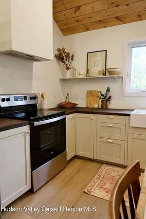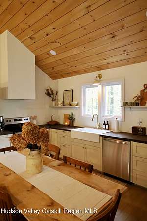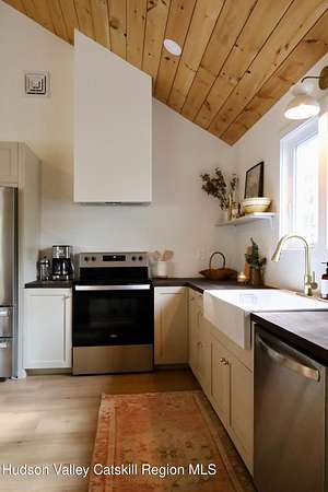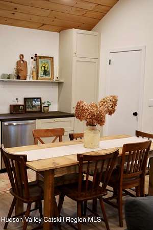 Welcome to this beautifully refinished two bedroom home, set on 17 peaceful acres, offering the perfect blend of modern upgrades and country charm. This single floor home has been completely gutted and rebuilt from the inside out. This home provides the comfort and reliability of essentially new construction. Major update include new insulation, new windows, new electrical, HVAC system along with a brand new hot water heater and new appliances. This home is truly move-in ready with modern finishes and thoughtful upgrades. The brand new wood stove and newly built chimney create a warm and inviting space perfect for cozy evenings. Step outside to relax on the covered front porch and enjoy the peaceful surrounding. The expansive 17 acre property offers privacy and endless possibilities for outdoor recreation, gardening or simply enjoying the natural surroundings. Currently utilized as a successful Airbnb, this property also presents an excellent opportunity for short term rental income. If you are looking for a turnkey home with modern systems, peaceful acreage, and built-in income potential, this beautifully renovated property is a must see. Conveniently located near Catskill, Leeds, Hunter and Hudson where you will find many fine restaurants, shops, local attractions and year round outdoor activities.