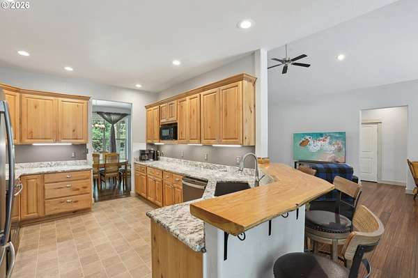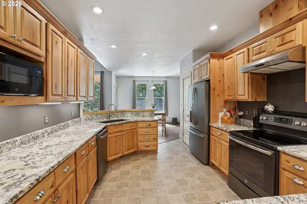 - Dishwasher, Free Standing Range, Free Standing Refrigerator, Granite, Microwave, Pantry, Stainless Steel Appliance