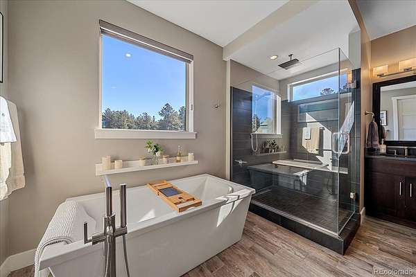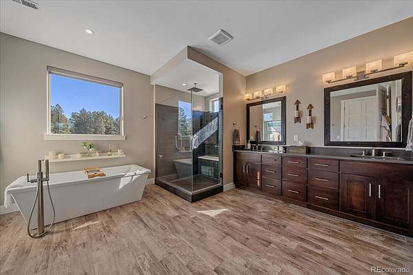 Situated on approximately 4 acres, this beautifully refreshed home offers the perfect blend of luxury, comfort, and usable land—ideal for those seeking privacy, space, and connection to nature without sacrificing access to Parker, Castle Pines, and the Denver Tech Center.
