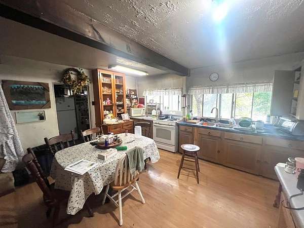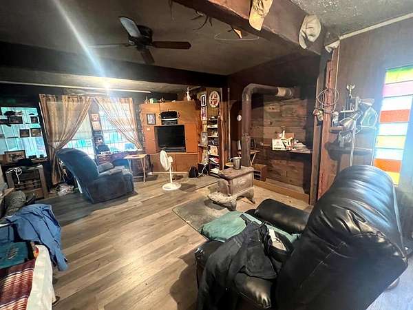 Escape to Serenity: 10-Acre Private Haven, unwind in peace & quiet, blending rustic charm and self-sufficient living. Remote electric gate and perimeter fencing, a cool spring feeds a gentle creek. Rolling meadows, mature trees, and undulating terrain feel expansive-perfect for gardening, grazing, or relaxation. Enter cozy comfort in this 2-story site-built home: 4 bedrooms, 2 bathrooms, metal roof. The living room warms with a wood-burning heater, leading to a well-equipped kitchen, spacious bedrooms, updated baths, and easy upstairs stairs. Enjoy the screened, covered front porch overlooking serene views. Ideal for DIY enthusiasts, numerous versatile workshops for storage, hobbies and more, backed by two water wells. Seamlessly step into resourceful living amid peaceful country living. Yet still convenient to town. More than land-a lifestyle upgrade. Contact us for a private tour and claim your off-grid bliss!