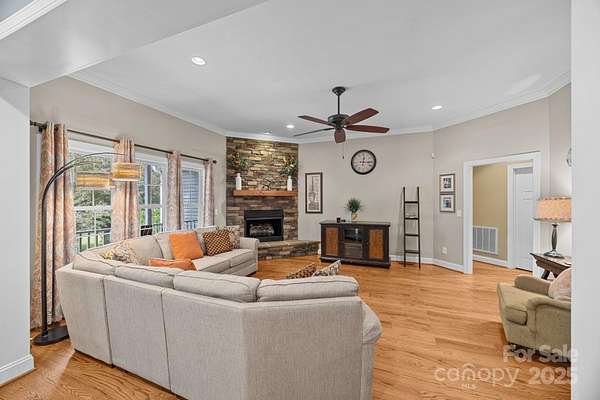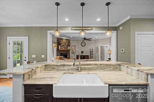 Tucked away on approximately 20 acres in Eastern Rowan County, this one-of-a-kind property was designed with comfort and versatility in mind. This thoughtfully laid-out home features an open floor plan, 3 bedrooms with private en-suites, designated office space and large bonus room with half bath. A main level half bath is perfect for guests. Six inch white oak hardwood floors run throughout main living areas, while carpet adds comfort to the bedrooms. The primary suite features a tray ceiling and spacious en-suite with elegant travertine stone flooring. The eat in kitchen boasts granite countertops and beautiful cabinets. A large island provides ample space for cooking and gathering. A standout feature of the property is the 1,728 sq. ft. detached garage/workshop (24x72) with half bath. It is fully heated/cooled and ready to accommodate a wide range of uses. If you've been searching for a private estate with premium finishes, flexible space, and room to grow - this is the one!