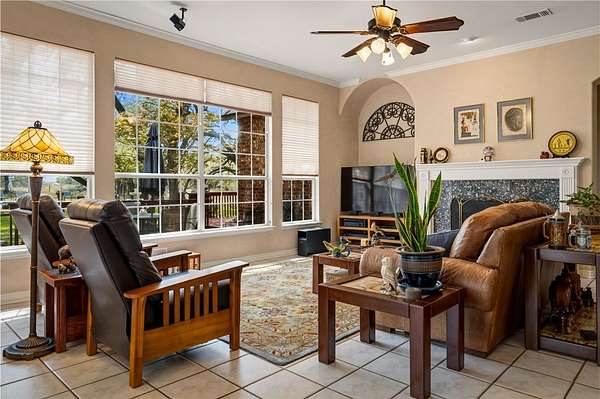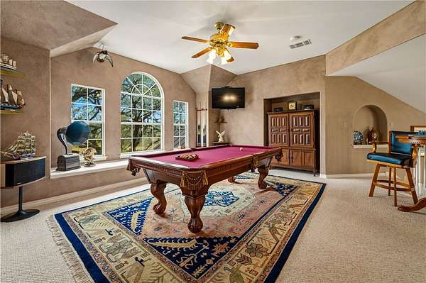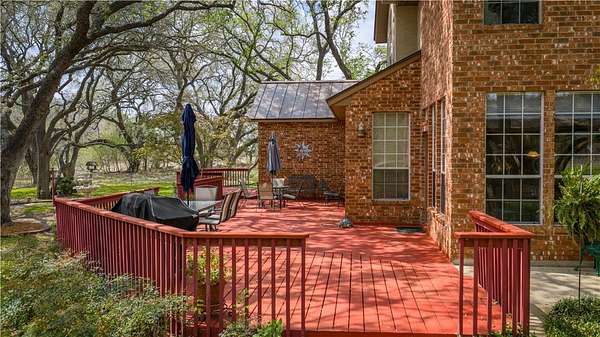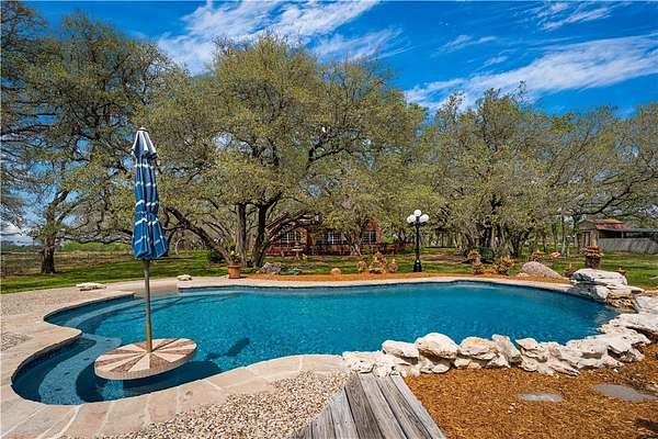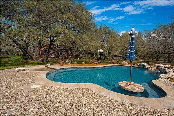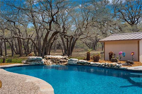 Welcome to your private retreat in the highly sought-after Shannon Ridge Subdivision! This stunning 3152 square foot brick home sits on 7.36 acres, offering a rare blend of refined living & peaceful country setting-just 25 miles from downtown San Antonio. Step through the front door into an impressive two-story entry that sets the tone for the home's elegance. A formal dining room sits to one side, with a versatile second living or office space opposite. The home opens into a beautifully designed open-concept layout featuring the great room, kitchen & breakfast area, all filled with abundant natural light from expansive windows. The great room fireplace creates a warm focal point, while the breakfast room's built-in desk adds functionality. The kitchen is a true centerpiece with recessed lighting, solid surface countertops, abundant cabinetry, a breakfast bar, center island & walk-in pantry. Nearby, the laundry room & half bath add convenience, while elegant arched openings enhance the first floor. The spacious primary suite features a vaulted ceiling & a wall of arched windows. The ensuite bath includes a soaking tub, glass-enclosed shower, dual vanities & a large walk-in closet. Upstairs offers a generous game room with a window seat plus 3 additional bedrooms & a Jack & Jill bath. The home also includes a central vacuum & security system. Step outside to an entertainer's dream. A large deck overlooks the landscaped yard & a spectacular in-ground pool (resurfaced in 2023) with beach entry, sitting shelf, in-pool table & waterfall, surrounded by a pebble-finish deck. There is a pool equipment shed & a storage building with a lean-to. Approx 3.5 acres are irrigated & landscaped, with mature live oaks creating a picturesque setting. A wood-fenced front boundary with an automatic gate adds privacy & the paved drive leads to a two-car garage & a two-car metal carport. This exceptional property offers space, style & serenity-schedule your showing today!