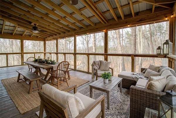 Refreshed, beautiful and cozy cabin retreat nestled in the North Georgia Mountains! This charming 2 bed 2.5 bathroom property offers open concept living and plenty of indoor and outdoor space to use and enjoy! This is a must see and all for under 285k not to mention the seasonal views of Mt Yonah! Inside you have the master on main and the upper level is open to below which works great as a den/office or simply a bedroom! The quartz countertops and updated features means this place is move in ready with little to no work required. With a large screened in porch, fire pit plus a gazebo, you have options when it comes to spending your time with nature. The property also offers a garden area (with fruit trees) and a very large fenced in yard for any pets you have. Sitting on nearly 2 acres you really feel the privacy at 230 Skyview Drive. The carport offers space for 2 vehicles and there is also room there for a camper/RV. The community offers a wonderful Lake, ideal for kayaking, paddle boarding, fishing or swimming along with a picnic area and grills.