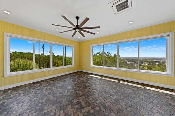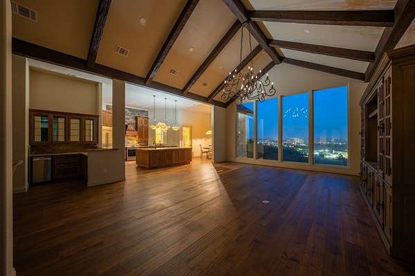 Priceless View! This custom-designed home on *17.65 acres* offers sweeping city views & stunning natural light throughout. The open floor plan features a great room w/ soaring ceilings, SE-facing wall of windows, formal dining, a wet bar & a chef's kitchen complete w/ a massive island, gas stove, custom cabinetry, 12' ceilings, walk-in pantry & breakfast nook. The sunroom off the kitchen is ideal for relaxing, while the owner's suite includes a spacious bath w/ a huge walk-in shower, dual vanities & two large closets. The den/office features a fireplace surrounded by built-ins. Featuring a complete suite living/dining & full kitchen, a spacious bedroom, bathroom, W/D connections, 1-car garage & a separate entrance, the lower-level offers 1,000 sq ft of private accommodations perfect for guests, multi-generational living, or as income potential. Did we mention the view? Outside, enjoy a screened-in observation deck, native landscaping, rock retaining walls & a 2-car garage. Additional unrestricted acreage is available for purchase with this sale. Call today to schedule a showing of this remarkable property. OWNER IS LREA.