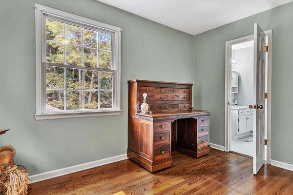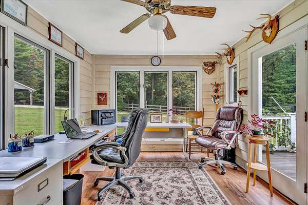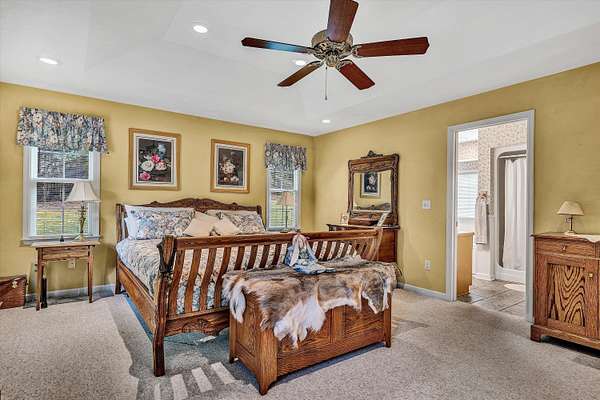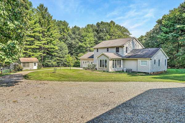 Welcome home, and just in time to start your spring and summer, beaming with country charm and convenience! A comfortable residence that makes everyday living easy with many maint-free features. This immaculate 3 Bd/3.1 Ba home is in a pvt subdivision, near cul-de-sac, and has countless opportunities! Plenty of storage and workspace within the attached garage and detached 26' x 36' shop. Enjoy morning coffee on the oversized covered porch or entertain on the deck and generous yard. 2 primary suites, 1st floor primary boasts tray ceilings, lg WI closet, whirlpool tub, lg shower, & dbl vanity. Open kitchen w custom cab, tile backsplash, & floor, SS micro, range/oven, dw, wash/dryer. Sunroom/office space. Beautiful oak hrdwd in LR, foyer, stairs, upper lvl, omit baths. Updated 2nd flr baths. Easily convert the workshop (woodworker/mechanic/auto body potential) with 110/220 elec into addt'l guest qrtrs, or utilize it for horse barn. Raised bed garden, fenced area w bldg w water, elec, and large concrete pad. Simple life in the country, abundant wildlife, yet close to local amenities & SML!