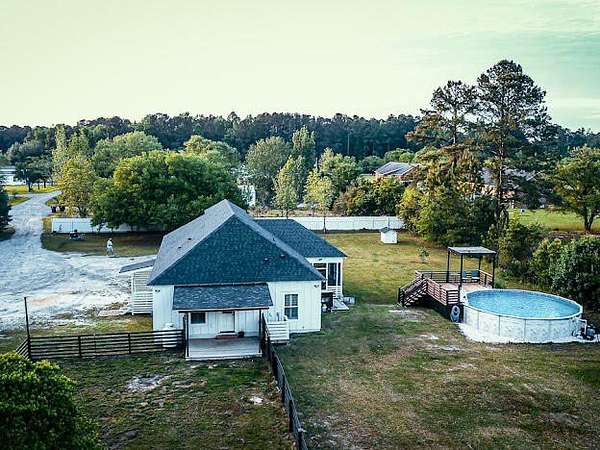 Well appointed custom-built home set on 3.26 private acres offering the perfect blend of comfort, space, and Lowcountry lifestyle. Located in Berkeley County Flex-1 zoning, this property provides added flexibility for a variety of residential uses.This thoughtfully designed 2 bedroom, 2 bathroom home with a flex room provides approximately 1,500 square feet of well-planned living space, ideal for a home office, guest room, or bonus area.The open-concept layout features a bright and inviting living area and a high-end kitchen complete with a premium gas oven, perfect for cooking and entertaining. Quality finishes and attention to detail can be felt throughout the home.Step outside to your private retreat featuring an above-ground saltwater pool with surrounding deck, a relaxing screeporch, and a partially fenced yard. With over 3.26 acres, there is plenty of room for outdoor living, animals, gardening, or future expansion. An added bonus is the upstairs dormer window area, currently unfinished attic space, offering excellent potential for future expansion such as a bonus room, office, or additional living area. Enjoy the freedom of no HOA, privacy, and peaceful surroundings while still being conveniently located near shopping, dining, and everyday conveniences in Moncks Corner. This property offers a rare opportunity to own acreage with flexibility and room to grow. Schedule your showing today.