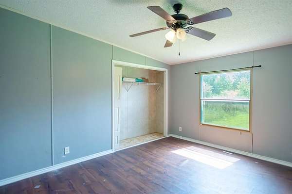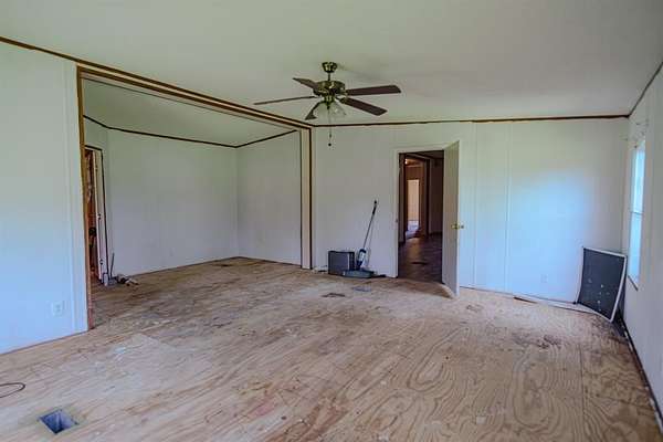 This 1,876 sq ft doublewide mobile home sits on a peaceful 10-acre lot, perfect for country living. Features include a spacious master suite with a huge walk-in closet, open living area, large utility room, and updated appliances. Outside, enjoy a 20x25 wired workshop, fenced acreage, and a covered front porch. Located in Sulphur Bluff ISD with no city taxes. Ideal for hobby farming, relaxing, or room to roam!