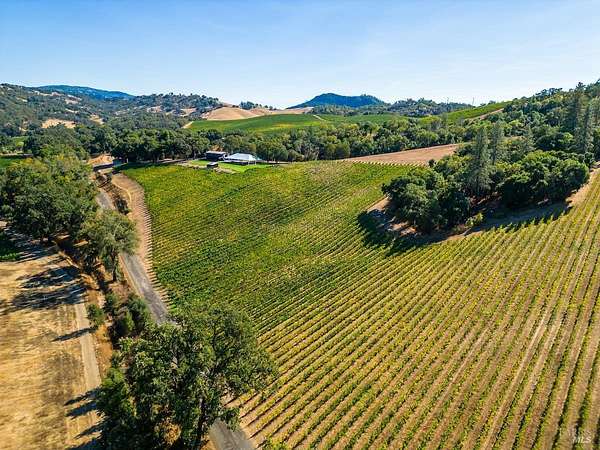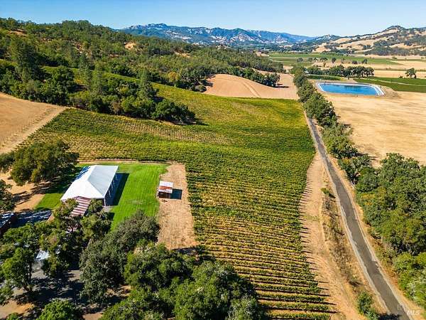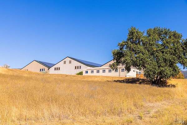 Presenting a rare opportunity to acquire two vineyard properties totaling +/-413 acres just minutes west of Hopland in southern Mendocino County. Together, the estates include +/-218 acres planted to premium vineyard, +/-54 fallow acres for future expansion, and an additional +/-7.5-acre olive orchard. The offering known as the Bliss and Contento Ranch, includes a +/-22,500 sqft wine production facility with offices and farm labor housing, enabling full vertical integration and ideal for launching or expanding a wine brand. The Contento Vineyard, known for its hillside blocks and exquisite wines, also features a sought-after wedding and event site with panoramic 360 views stretching from Sonoma County to Duncan Peak. Three reservoirs, multiple potential homesites, and machine-harvestable vineyard blocks make this a versatile and income-generating opportunity. Infrastructure includes barns, shops, and additional farm labor residences. Whether optimizing the event business, expanding vineyard operations, or growing wine production capacity, this combined offering is a strategic, turnkey investment in one of Mendocino's most beautiful and productive winegrowing regions. Beautiful vineyard view homesites amongst the Contento Ranch looking north/north east across the valley.