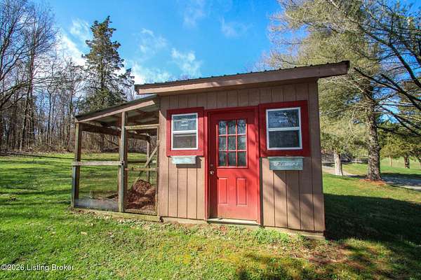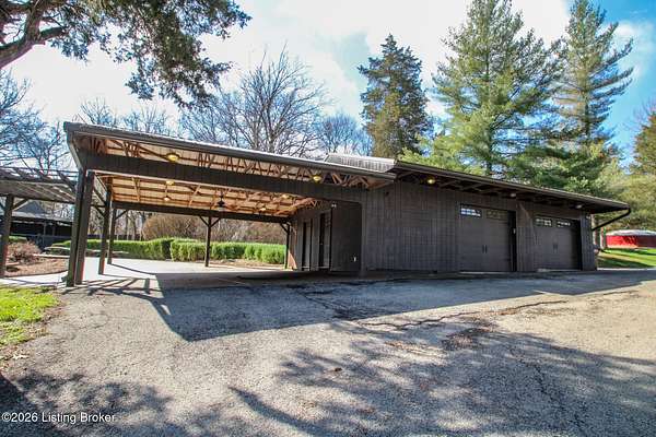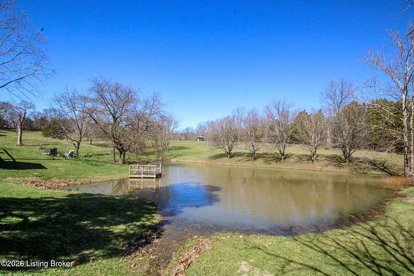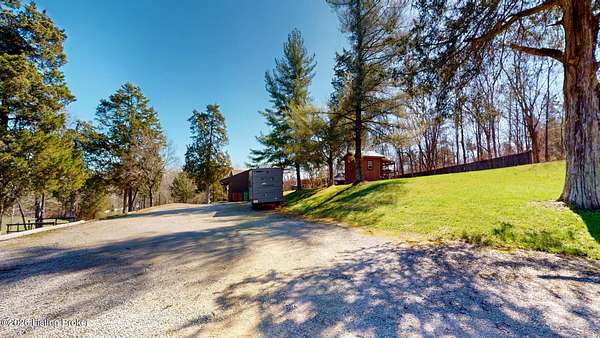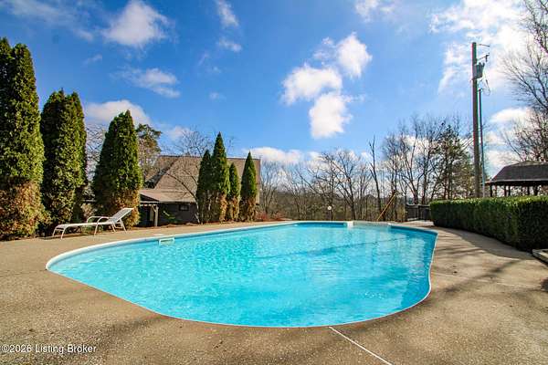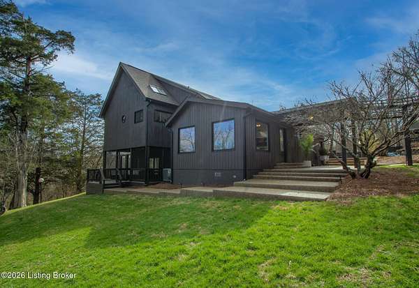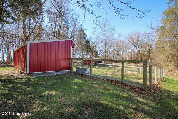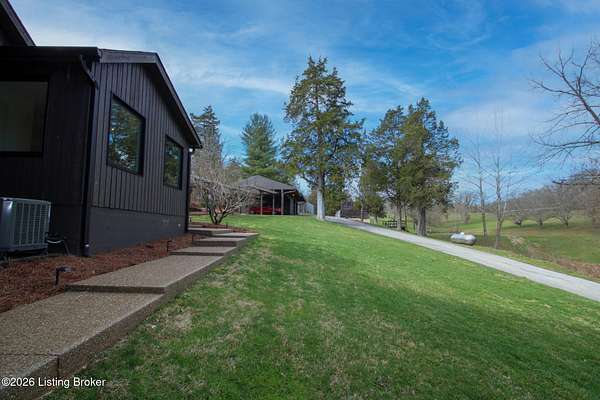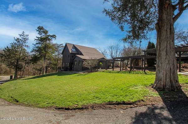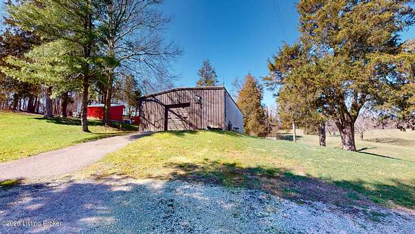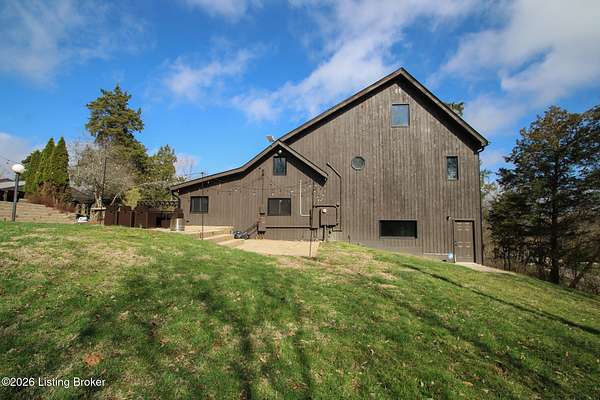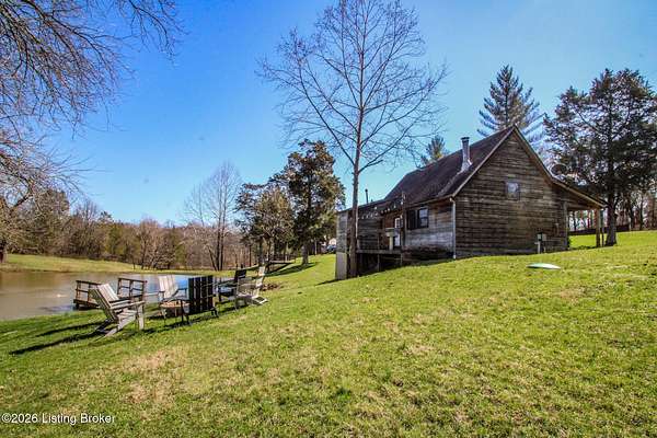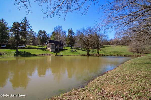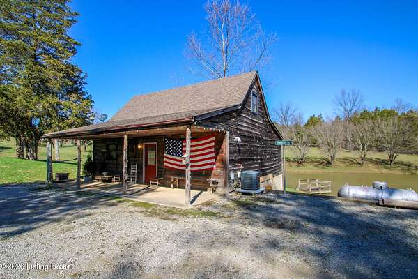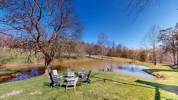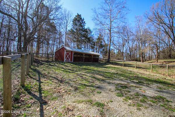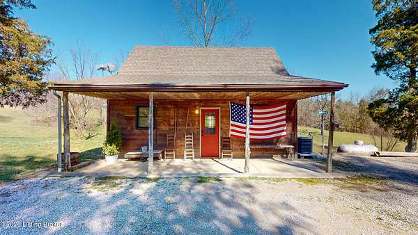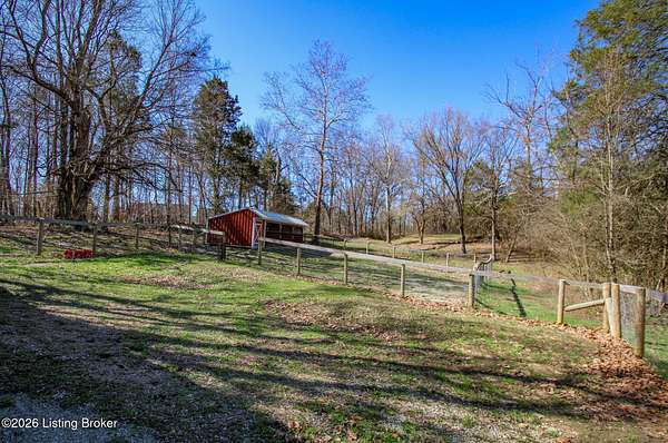 Explore a truly special property tucked along the scenic countryside of sought-after Long Run Road. Set among rolling hills, mature trees, and peaceful open land, this one-of-a-kind estate blends modern living, rustic charm, and exceptional outdoor amenities into an unforgettable retreat in Louisville's East End. The main residence has been beautifully renovated, with a clean, modern aesthetic that preserves its warm architectural character. Light-filled living spaces feature wide-plank hardwood floors, designer lighting, and thoughtful finishes throughout. The stunning kitchen anchors the home with custom cabinetry, quartz countertops, subway tile backsplash, open shelving, and a large island. Off the kitchen is a beautifully designed laundry room. The sprawling living room centers around a striking white brick fireplace with reclaimed wood mantel. Step outside and the property truly unfolds. A large patio overlooks the peaceful landscape and leads to a sparkling in-ground pool, charming gazebo, and hot tub- the perfect setting for entertaining. Adding even more value and flexibility is the separate guest house- a charming rustic cabin complete with covered front porch, vaulted ceilings, kitchen, living space, bedroom area, and full bath. The grounds offer incredible versatility and lifestyle opportunities- a picturesque pond with private dock and a beautiful outdoor pavilion and deck area. For those needing space for hobbies, equipment, or vehicles, the property includes a large detached garage/workshop with covered parking, along with multiple outbuildings and barns that provide storage, workshop space, or potential for small hobby farming. The fenced pasture areas, red barns, and open green space make the property equally suited for animals, gardening, recreation, or simply enjoying the peaceful countryside setting. A rare opportunity to own a private retreat where nature, comfort, and character come together beautifully.