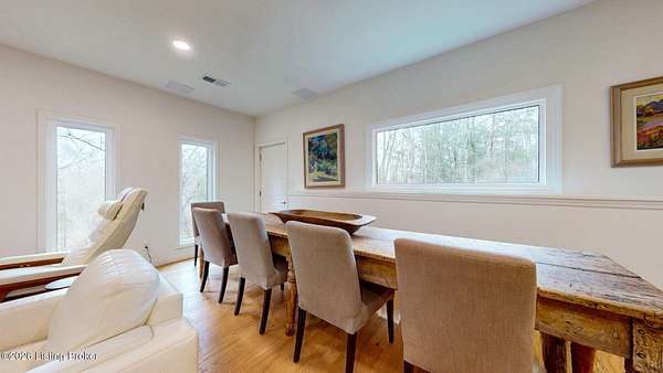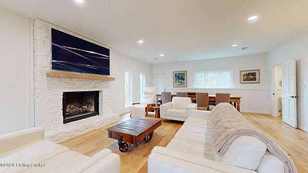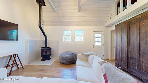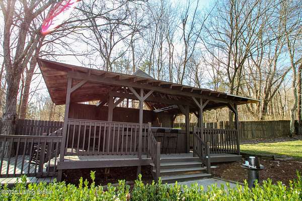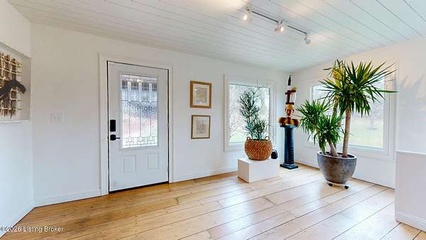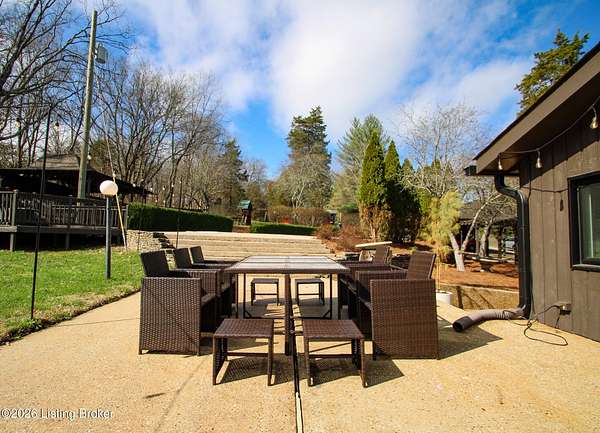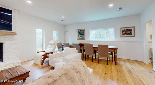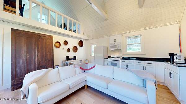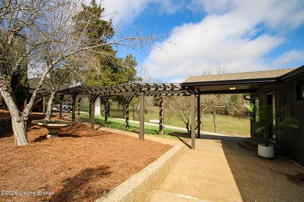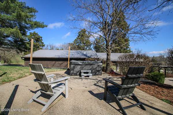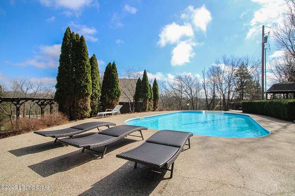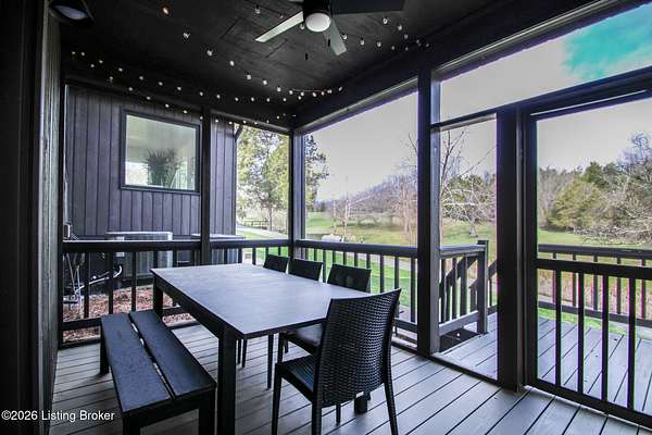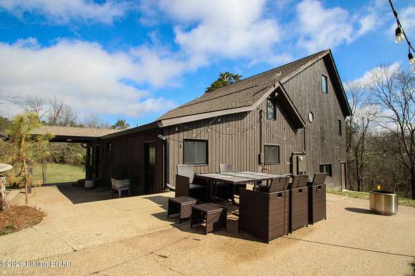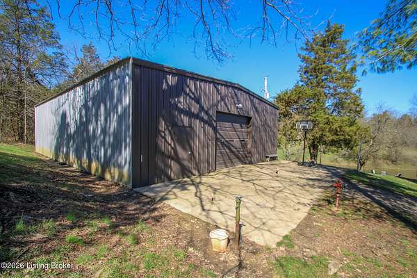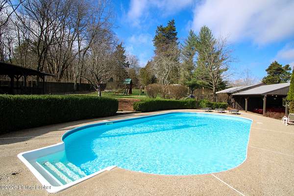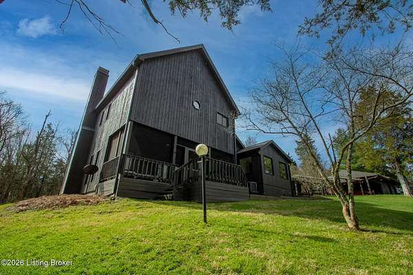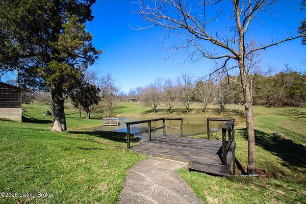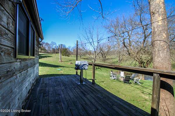 Explore a truly special property tucked along the scenic countryside of sought-after Long Run Road. Set among rolling hills, mature trees, and peaceful open land, this one-of-a-kind estate blends modern living, rustic charm, and exceptional outdoor amenities into an unforgettable retreat in Louisville's East End. The main residence has been beautifully renovated, with a clean, modern aesthetic that preserves its warm architectural character. Light-filled living spaces feature wide-plank hardwood floors, designer lighting, and thoughtful finishes throughout. The stunning kitchen anchors the home with custom cabinetry, quartz countertops, subway tile backsplash, open shelving, and a large island. Off the kitchen is a beautifully designed laundry room. The sprawling living room centers around a striking white brick fireplace with reclaimed wood mantel. Step outside and the property truly unfolds. A large patio overlooks the peaceful landscape and leads to a sparkling in-ground pool, charming gazebo, and hot tub- the perfect setting for entertaining. Adding even more value and flexibility is the separate guest house- a charming rustic cabin complete with covered front porch, vaulted ceilings, kitchen, living space, bedroom area, and full bath. The grounds offer incredible versatility and lifestyle opportunities- a picturesque pond with private dock and a beautiful outdoor pavilion and deck area. For those needing space for hobbies, equipment, or vehicles, the property includes a large detached garage/workshop with covered parking, along with multiple outbuildings and barns that provide storage, workshop space, or potential for small hobby farming. The fenced pasture areas, red barns, and open green space make the property equally suited for animals, gardening, recreation, or simply enjoying the peaceful countryside setting. A rare opportunity to own a private retreat where nature, comfort, and character come together beautifully.