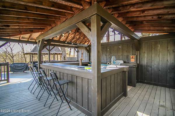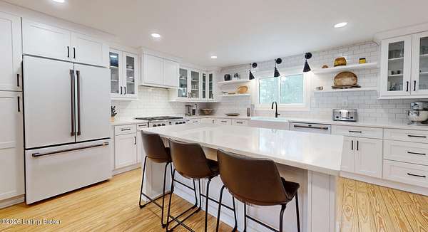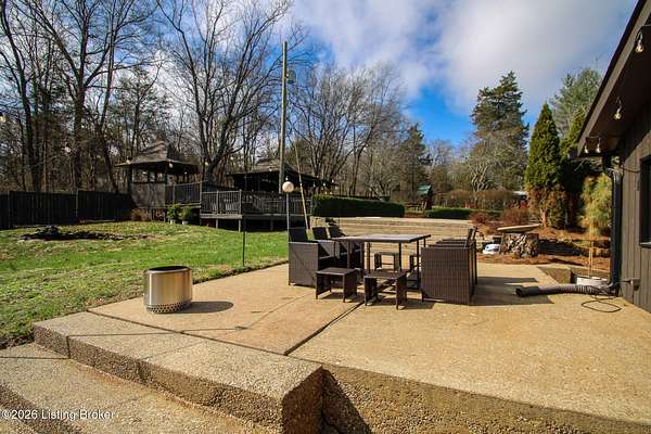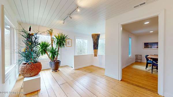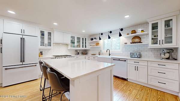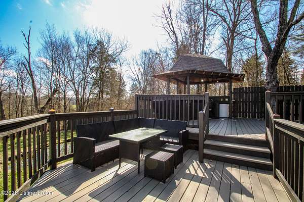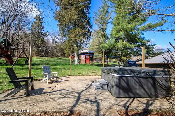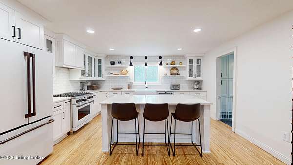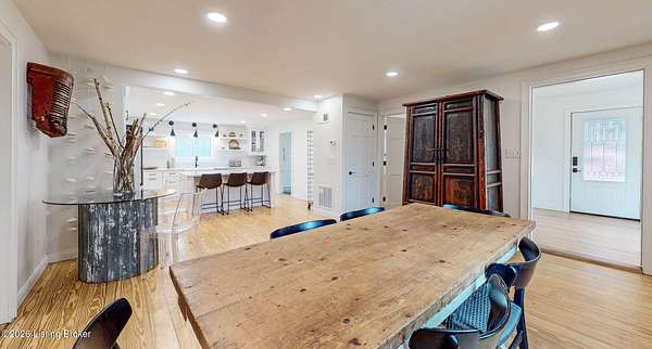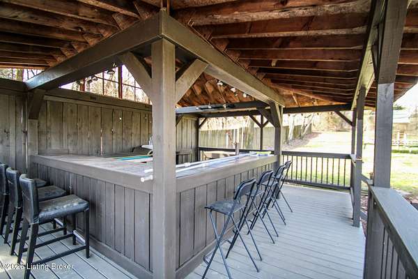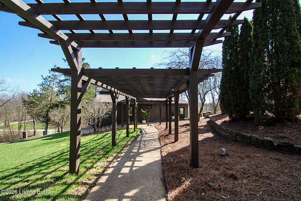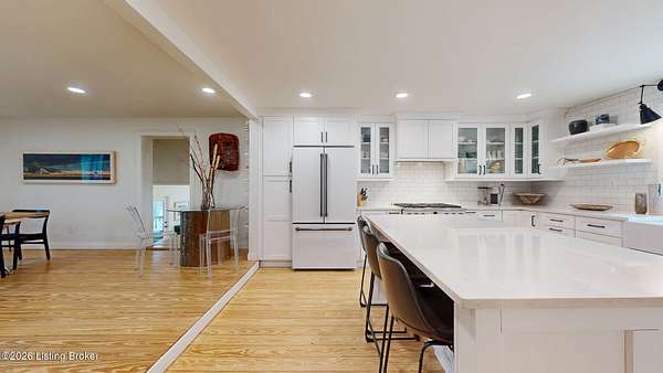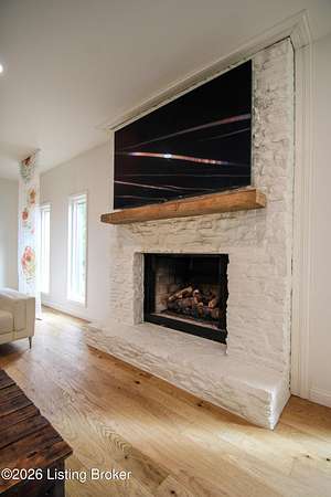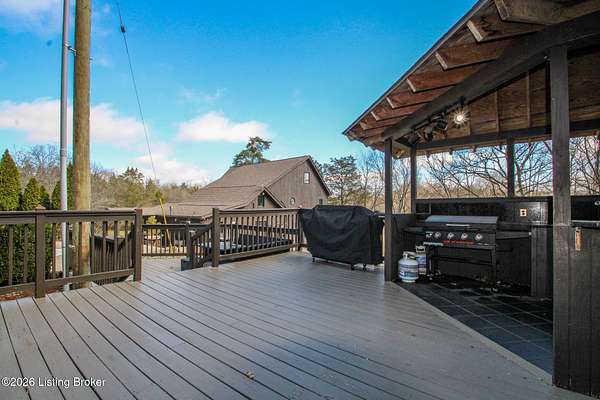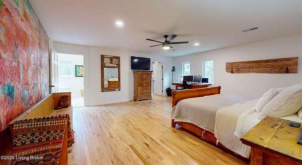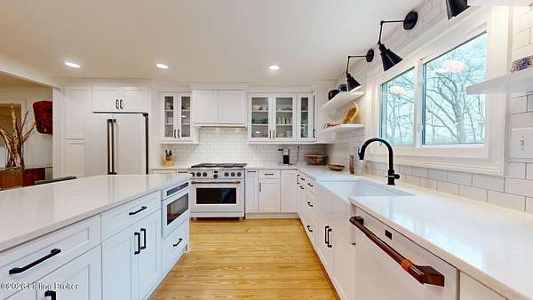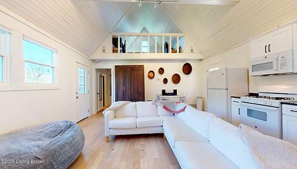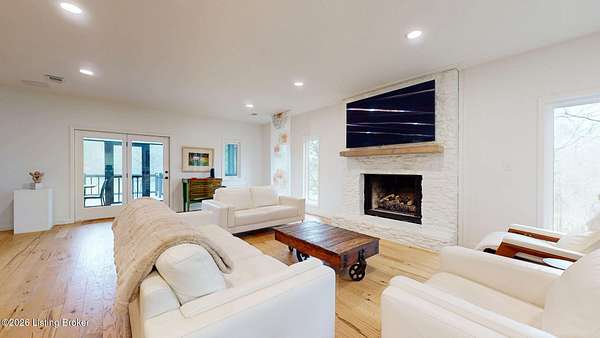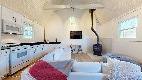 Explore a truly special property tucked along the scenic countryside of sought-after Long Run Road. Set among rolling hills, mature trees, and peaceful open land, this one-of-a-kind estate blends modern living, rustic charm, and exceptional outdoor amenities into an unforgettable retreat in Louisville's East End. The main residence has been beautifully renovated, with a clean, modern aesthetic that preserves its warm architectural character. Light-filled living spaces feature wide-plank hardwood floors, designer lighting, and thoughtful finishes throughout. The stunning kitchen anchors the home with custom cabinetry, quartz countertops, subway tile backsplash, open shelving, and a large island. Off the kitchen is a beautifully designed laundry room. The sprawling living room centers around a striking white brick fireplace with reclaimed wood mantel. Step outside and the property truly unfolds. A large patio overlooks the peaceful landscape and leads to a sparkling in-ground pool, charming gazebo, and hot tub- the perfect setting for entertaining. Adding even more value and flexibility is the separate guest house- a charming rustic cabin complete with covered front porch, vaulted ceilings, kitchen, living space, bedroom area, and full bath. The grounds offer incredible versatility and lifestyle opportunities- a picturesque pond with private dock and a beautiful outdoor pavilion and deck area. For those needing space for hobbies, equipment, or vehicles, the property includes a large detached garage/workshop with covered parking, along with multiple outbuildings and barns that provide storage, workshop space, or potential for small hobby farming. The fenced pasture areas, red barns, and open green space make the property equally suited for animals, gardening, recreation, or simply enjoying the peaceful countryside setting. A rare opportunity to own a private retreat where nature, comfort, and character come together beautifully.