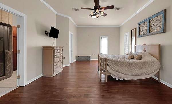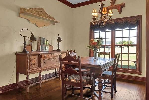 Stunning Country Estate on 5+ Acres with Endless Features. Welcome to your dream home! This 5 bedroom, 4.5 bath, two-story estate offers over 5,000 sq. ft. of living space and is set on more than 5 acres of beautiful countryside with a barn, workshop, and a peaceful creek running through the property. Step inside and be greeted by a spacious living area perfect for entertaining, and large bedrooms designed for comfort. The master suite is a true retreat, featuring French doors that open onto a wrap-around porch and a luxurious bathroom with a soaking tub and its own fireplace. This home also offers an underground bunker which is great safety room. Along with the bunker and all of the storage this home has to offer, there is hidden gun rooms behind the bookshelf's. Upstairs, enjoy a balcony overlooking the property, ideal for morning coffee or evening sunsets. The home also boasts secret storage rooms, an underground bunker, and abundant built-in storage throughout. This home also offers a separate and private living quarters upstairs that would be a great mother in law suite, or even an air bnb! Outdoor living shines here with a covered back patio complete with an outdoor kitchen and fireplace--the perfect setting for hosting friends and family year-round. Additional amenities include an enclosed dog run, barn for livestock, and a versatile workshop--making this property both functional and extraordinary. Whether you're gathering with loved ones, enjoying the serene landscape, or taking advantage of the endless space, this estate truly has it all.