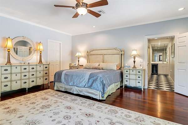 - Built-In Features, Ceiling Fans(s), Crown Molding, Eat-In Kitchen, Living Room/Dining Room Combo, Solid Surface Counters, Solid Wood Cabinets, Thermostat, Walk-In Closet(s), Window Treatments