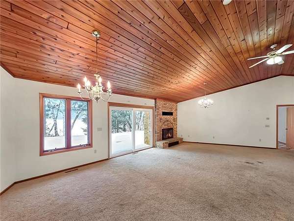 Set on the desirable Portage Chain of Lakes, this lakeshore home offers panoramic water views and an exceptional sense of privacy. Enjoy expansive lake views overlooking Deep Portage Preserve, providing undeveloped shoreline and wooded scenery across the water. The property is tucked into a private, natural setting with a peaceful Northwoods feel. Offering convenient one-level living, the open layout features vaulted ceilings, a wood-burning fireplace, and generous living and dining spaces designed to take full advantage of the lake setting. The home includes a full primary bedroom suite that is privately set apart from the additional bedrooms. Large windows and lake-facing areas capture sweeping views of Big Portage Lake. Recent updates include a new furnace. With over 1,000 acres of connected water to explore, the Portage Chain is ideal for boating, great fishing, and year-round recreation, making this an excellent opportunity for relaxed lake living.
