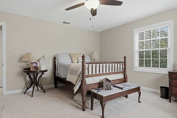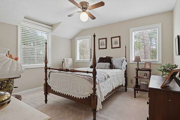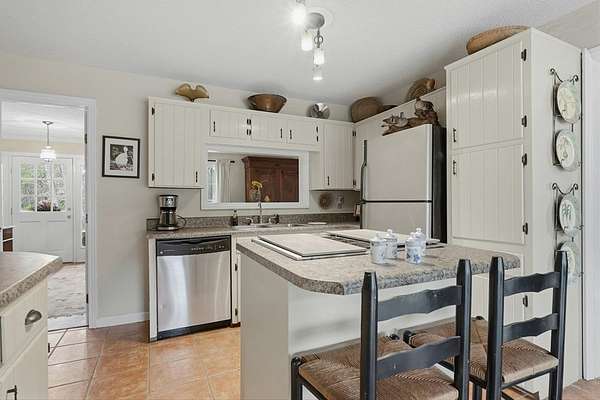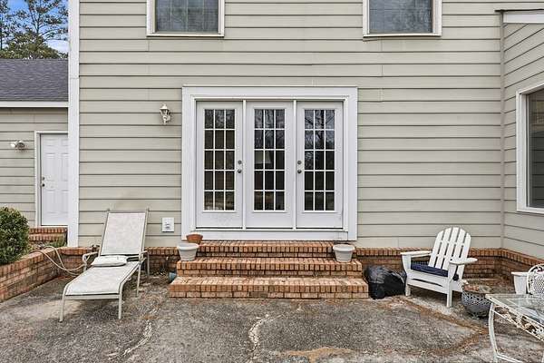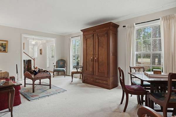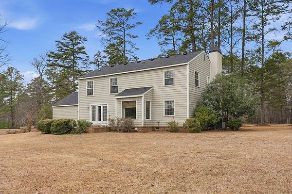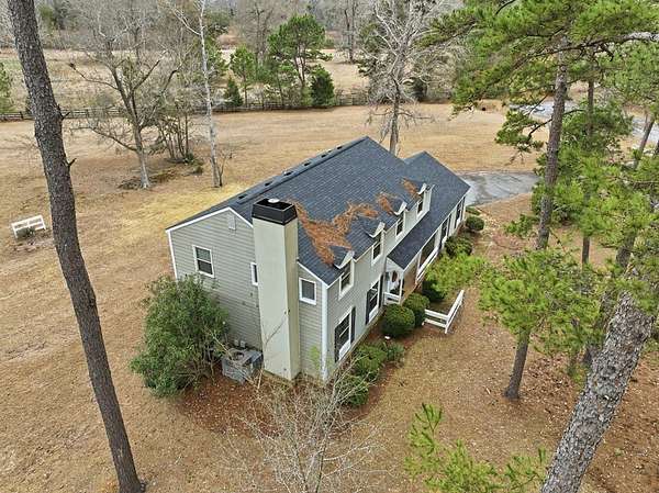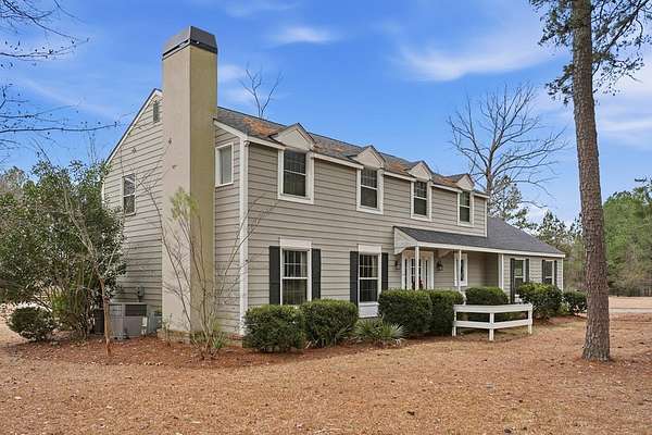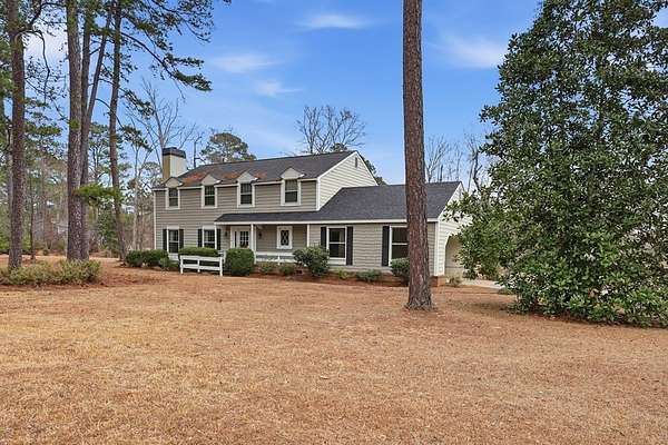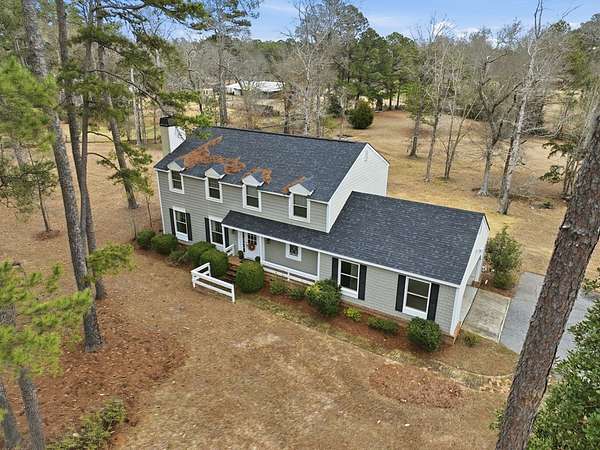 CHARMING COLONIAL STYLE home with over 2,500 sq.ft. on serene 2.72 acre lot. This 4 BR, 2-1/2 Ba residence blends charm with privacy in a quiet cul-de-sac location. A spacious living room features custom built-ins around a cozy fireplace, separate formal dining room, and a kitchen boasting an island, cream-colored cabinetry with roll-out drawers and stainless appliances. An opening connects the kitchen to a welcoming den with a remote controlled fireplace/heater that changes colors, Mexican tile floors and textured grass cloth walls. Upstairs you'll find a huge primary suite with relaxing sitting area and adjoining bath that includes a laundry chute to the first floor laundry room. 3 additional spacious bedrooms and a second full bath complete the upper level. French doors from the den lead to an outdoor patio accented with brick wall and the expansive rear yard where deer and other wildlife are often spotted. Located off Old Dawson Road in a beautiful subdivision but just minutes to town. Call to see this well loved one owner home.