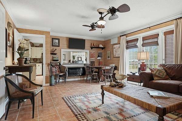 - Built-In Bookcases, Chair Rail, Crown Moulding, Kitchen Island, Pantry, Sitting Area Primary, Wide Baseboard