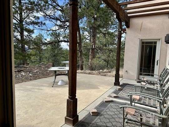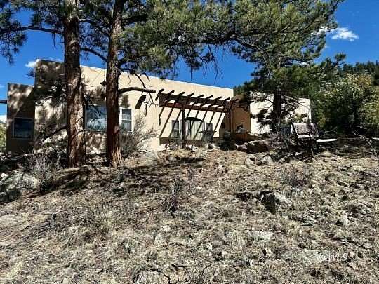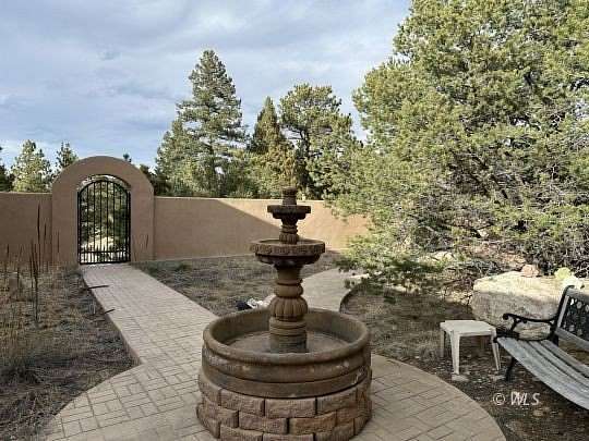 Snuggled against a backdrop of juniper, ponderosa and pinion pine this handsome custom-built southwestern style home is appealingly private. The surrounding 35.5 acre setting, home to the area's native wildlife, offers breathtaking mountain vistas, varied terrain and notable rock outcroppings. A picturesque drive "Judge Hopkins Way" leads from the maintained Dilley Ranch subdivision roadway to a gated courtyard entry where guests may announce their arrival via intercom. The southwest concept continues inside with the privacy of thick walls and impressive hallways leading to a generous master suite, a 2nd bed/bath, and a library/offiiice, easily converted to a 3rd bedroom/bath if needed. The centrally located greatrooom, country kitchen and dining area are perfect for entertaining family and friends. A back patio faces west for enjoyment of those sought after Sangre de Cristo sunsets. Originally designed with retirement in mind, the single level home features tiled flooring and countertops, efficient in-floor radiant heat, a low maintenance exterior, oversized 2 car garage and natural landscaping. We think you'll agree, this one's a "must see". We invite you to visit today.