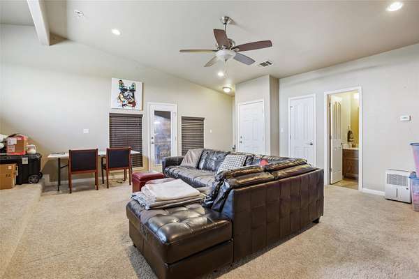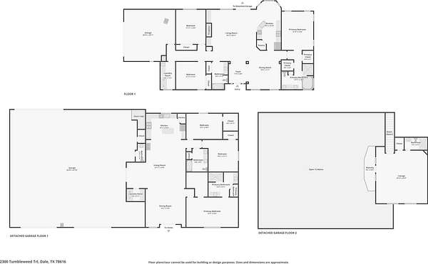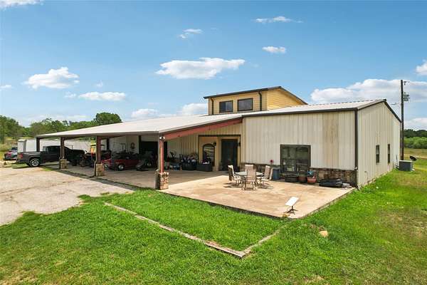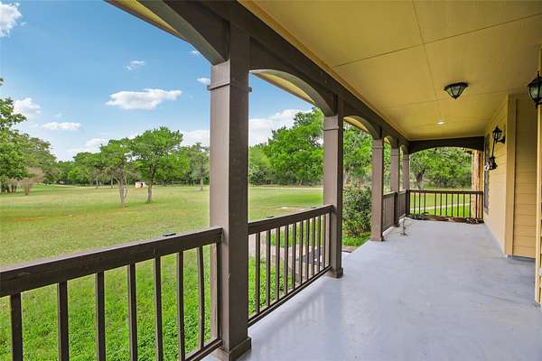 A sprawling 10+ acres just East of Kyle and North of Lockhart in Dale with two residences plus your dream garage! The main house is a single-story 3 bedroom, 2 bath home of approximately 2286 square feet and an attached 2-car garage. It features expansive covered front and back porches, two dining areas, a cozy wood-burning fireplace in the living, granite countertops in the kitchen, his-and-her walk-in closets, and multiple tray ceilings. The 2695 square foot second residence features 3 main-level bedrooms, 2 bathrooms, and an additional guest-suite with a full bathroom & balcony-accessed through the stairs in the commercial sized attached garage with 3 extra wide garage doors and an industrial ceiling fan. Inside the second residence, you'll enjoy an expansive open living area, granite countertops, center kitchen island with bar seating, stainless steel gas cooktop with an overhead range hood, track lighting over the dining area, and an extra large primary bedroom with a tray ceiling and recessed lighting. All 10 acres are neatly groomed and well kept. With little restrictions and space for endless possibilities, this property is perfect for anyone looking to get away from the noise. This is luxury country living! Take a tour today!