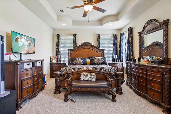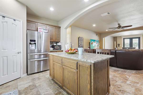 - Bookcases, Breakfast Bar, Built-In Features, Ceiling Fan(s), Ceiling-High, Double Vanity, Entrance Foyer, Granite Counters, In-Law Floorplan, Kitchen Island, Multiple Dining Areas, Multiple Living Areas, Open Floorplan, Pantry, Primary Bedroom On Main, Recessed Lighting, Track Lighting, Tray Ceiling(s), Two Primary Closets, Vaulted Ceiling(s), Walk-In Closet(s)