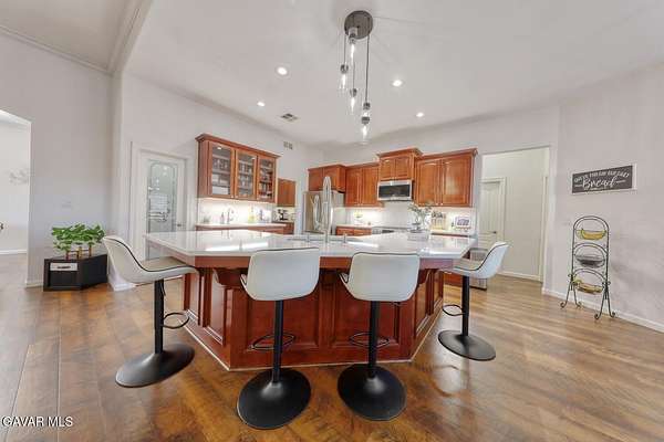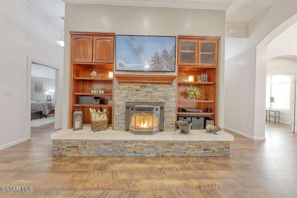 Live where life feels like a getaway. This stunning 4-bedroom 2.5 bath 3 car garage home offers split wing open-concept living, an Amazing 1560 sq ft workshop and spaces that suit your every need. Whether you're hosting friends or enjoying a morning cup of coffee with mountain views, this is more than a house, it can be a new lifestyle. This home offers a great room where comfort meets style. Gather with loved ones under 10 ft ceilings minimum throughout surrounded by beautiful Pergo floors and a stunning raised-hearth travertine stack stone fireplace with pellet insert. Whether hosting a lively celebration or enjoying a quiet evening by the fireplace, this space adapts beautifully to every occasion. The kitchen blends style and function with beautiful white quartz countertops, stainless steel appliances, wet bar, ample counter space and under-cabinet lighting creating a warm, inviting glow. The walk-in pantry provides abundant storage, while the open-concept design keeps you connected to guest as you cook. This home boasts a sunlit dining area, seamlessly flowing from the kitchen with large windows looking out to your spacious covered patio that provides space you'll enjoy in every season. Unwind at the end of the day in your warm and welcoming main bedroom designed for comfort. A walk-in closet and 2 additional closets keep everything organized. En-suite bathroom features a dual vanity, white lightly veined quartz countertops, modern large soaking tub, new tile flooring and shower, private water closet creating a space that feels both indulgent and functional. Beyond the main living areas, you'll find three additional bedrooms that can easily adapt to your needs, whether you desire a home office, a creative studio, or a cozy retreat for family or visitors. This sprawling workshop/ garage holds 4 additional vehicles a 42'long RV, Trailer, or Boat. Bring your projects to life! OR a custom horse barn! NEW SEPTIC TANK Installed November 2025
