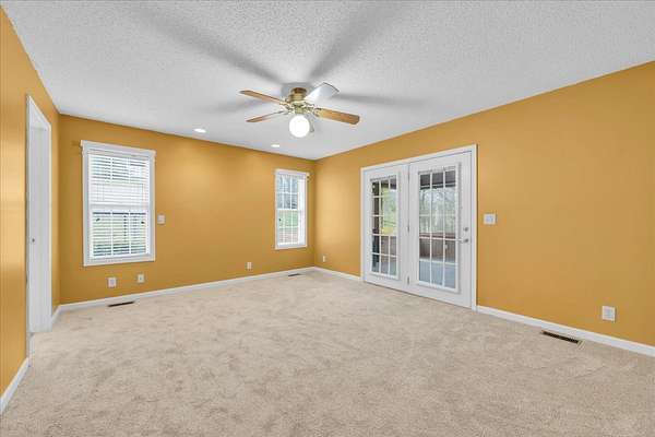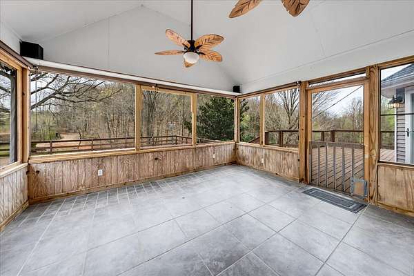 Step out from your primary bedroom to your own private covered, screened deck, offering panoramic views of the property and a perfect spot to unwind.