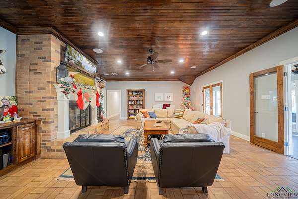 From I20 turn south on Hwy 259 go South Towards Kilgore, turn left on to Stone Rd East, turn Right on to Higginbotham South turn Right on Greenhill's dr house on your right SIY Please give 2 hour notice call 469-964-1621 for showing details.
