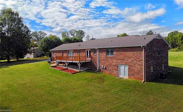 Rare opportunity! This spacious brick rancher sits on over 5 beautiful acres in a highly sought-after location. Nicely built; the home features a large main level with generous rooms, a partially finished basement, a 2-car garage, and a paved driveway. Well cared for and full of character, it offers comfort and functionality with endless potential for personalization. The property includes a large barn-style outbuilding with electric service--ideal for a workshop, storage, or crafting space. Enjoy the outdoors with an expansive front and back yard, a wooded backdrop for privacy, and a large rear deck perfect for relaxing or entertaining. Despite its quiet setting, you're just minutes from major highways, shopping, dining, and hospitals. A perfect blend of country living with city convenience. Excellent opportunity for homeowners seeking space or builders/developers with subdivision potential. See Agent Remarks.