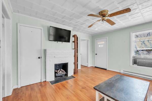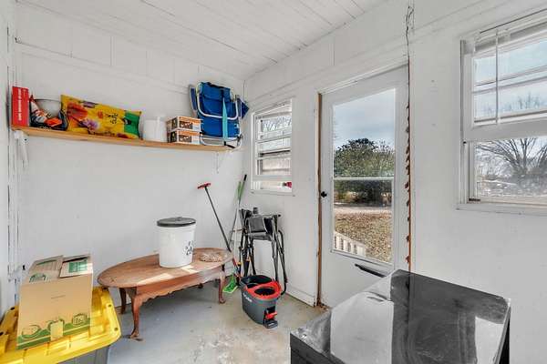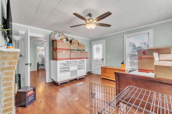 Welcome to 2301 SJ Workman Highway in Woodruff, South Carolina - a charming one-bedroom, one-bath cottage filled with warmth, light, and possibilities. Built in 1948 and offering 985 square feet of living space, this home sits on a peaceful, 1.98 acre open lot with plenty of room to enjoy the outdoors or expand in the future. As you walk up to the welcoming front door, you're greeted by a sweet porch that leads into a cozy living room with paneled walls and a painted fireplace that adds to the charm. Sunlight fills the space through wide windows, creating a bright, inviting feel. The kitchen has solid wood cabinets, lots of counter space, and twin windows over the sink that bring in light and views of the side yard. A separate laundry area adds function, while the sunroom off the side entry offers flexibility; perfect for storage, a hobby room, or even a mudroom. The bedroom is roomy and light, with enough space for a desk or reading nook, and the full bath has been updated with a clean sink and simple finishes that keep it fresh and comfortable. Outside, the flat backyard has mature trees and a detached storage building that could serve as a workshop, garden shed, or creative space.