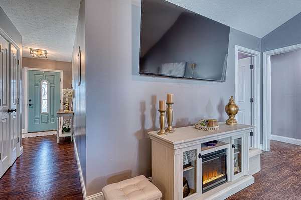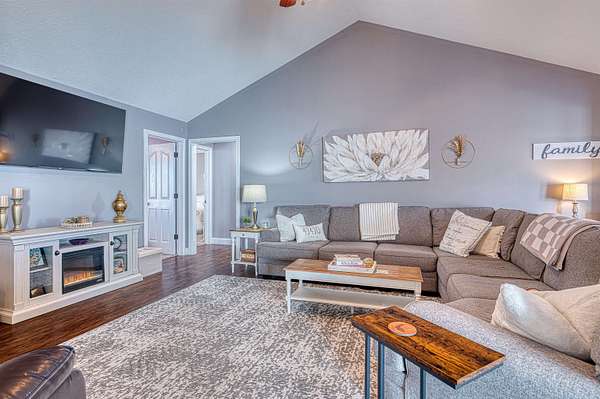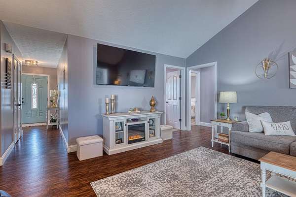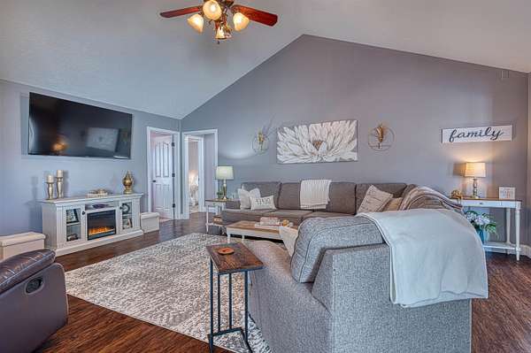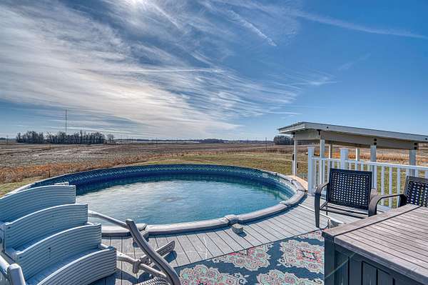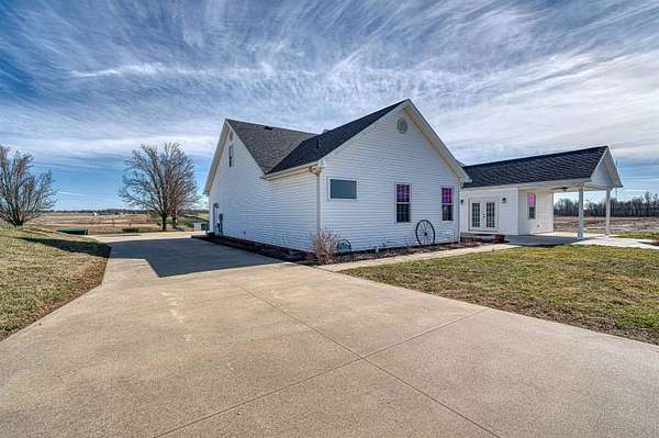 Welcome to this beautifully designed all-electric home offering comfort, functionality, and exceptional amenities both inside and out. This spacious 4-bedroom, 2-bath home features a versatile bonus room above the garage, providing flexible living space for guests, hobbies, or a home office. The owner’s suite offers a relaxing retreat with a walk-in closet, garden tub, and separate shower. The home also includes an eat-in kitchen equipped with black stainless steel appliances, plenty of storage, and easy access to the main living areas. The vaulted ceilings in the living room create an open, airy feel and flow seamlessly into a dedicated pool room, perfect for entertaining year-round. Additional interior highlights include a 3-zone HVAC system, conditioned crawlspace, attic access, storm shelter located inside the home, and the home is wired for a Ring camera system. Enjoy the reliability of fiber optic internet, ideal for remote work, streaming, and modern living. Step outside to enjoy your own private retreat featuring a 27-foot above-ground pool with new Trex decking and a swim-up bar, plus a covered patio perfect for relaxing or hosting gatherings all situated on 3.47 acres. A standout feature of the property is the impressive 24x40 pole barn with concrete floors, electric, heating and air conditioning, and a full bathroom—ideal for a workshop, hobby space, business use, or additional entertaining area.