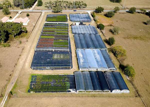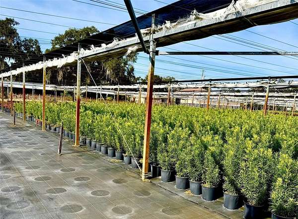 Fully operating Wholesale Ornamental Nursey for sale on 5.67 acres in Lake County. Included in the sale are 12 Greenhouses, 3 shade houses, a propagation house, 2 (5 hp) 4" deep wells, 2 off-road nursery trucks, a 200 gallon Honda sprayer and a diesel engine generator, along with approximately $90000-$100,000 worth of plants, chemicals and pots plus 2 tracking trailer plant carts and a storage shed. There are two open production areas encompassing over 28,000 sqft, The property has an 11 Zone Irrigation system.