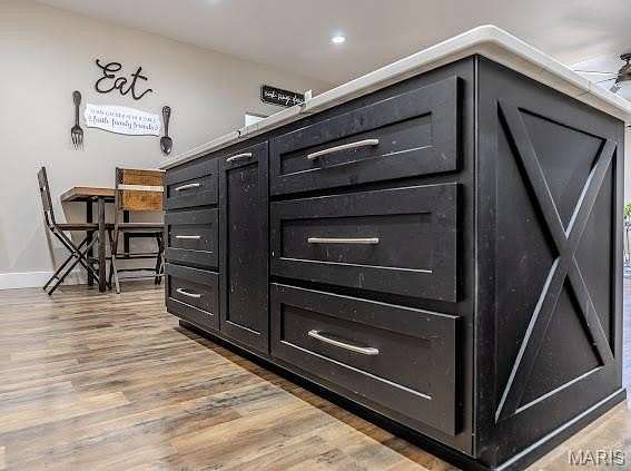 - Breakfast Bar, Ceiling Fan(s), Custom Cabinetry, Double Vanity, Dumbwaiter, Eat-In Kitchen, Kitchen/Dining Room Combo, Open Floorplan, Separate Shower, Solid Surface Countertop(s), Walk-In Closet(s), Walk-In Pantry, Workshop/Hobby Area