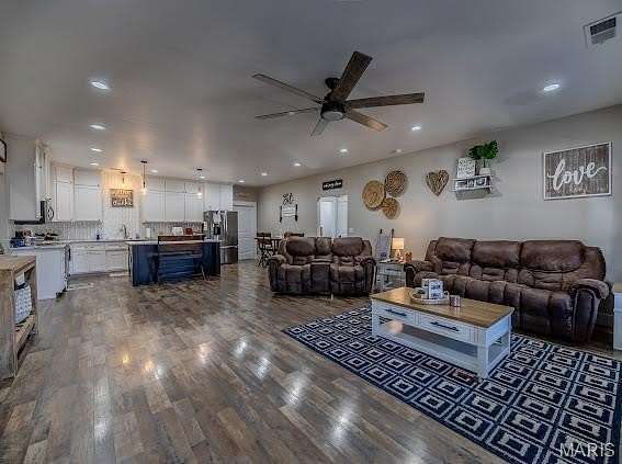 WELCOME to YOUR NEW ONE OF A KIND HOME and SHOP….YES, IT's A SHOUSE situated ON 5.4 ACRES ML, WITH DEEDED RIVER ACCESS. THIS HOME and SHOP WAS CONSTRUCTED IN 2022. THE HOME HAS OVER 2342 SQ FT OF LIVING SPACE IT OFFERS A VERY OPEN FLOOR PLAN, SPLIT BEDROOM PLAN, LVP FLOORING, A GREAT KITCHEN, LARGE WALK in PANTY and LAUNDRY ROOM, BEAUTIFUL CUSTOM CABINETRY, W/QUARTZ COUNTER TOPS, LARGE CENTER ISLAND, and STAINLESS APPLIANCES. THE SPACIOUS MASTER SUITE offers a Large MASTER BATH with DOUBLE VANITY, LARGE WALK IN CLOSET, CUSTOM TILE SHOWER, 38 X 60 ATTACHED GARAGE- SHOP HEATED and COOLED W/ LED LIGHTING. THERES AN ADDITIONAL BONUS AREA PERFECT FOR A RECREATION ROOM or HOME GYM .THE BEST SET UP FOR THE HEATING and COOLING SYSTEM A HEAT PUMP and PROPANE BACK UP. YOUR WILL ENJOY the LARGE FRONT COVERED PORCH. NEW BLACK CHAIN LINK FENCED AREA. YOU WILL LOVE THE ROCK BLUFF VIEWS and CROSSING THE RIVER ON YOUR WAY HOME. NEW SPLASH INTERNET TOWER JUST INSTALLED ON THE PROPERTY.