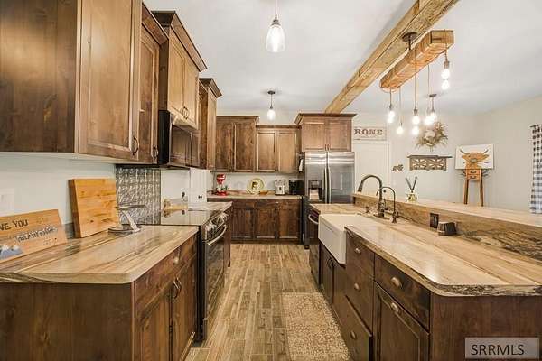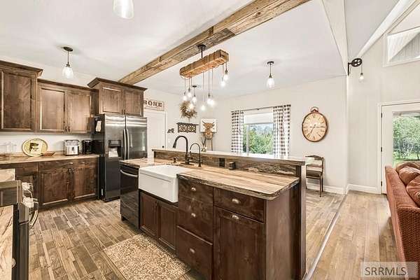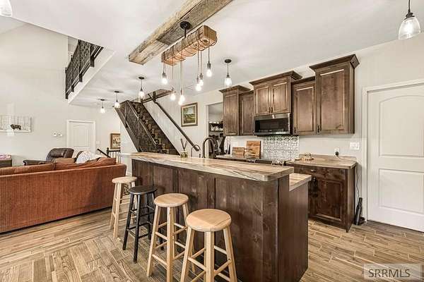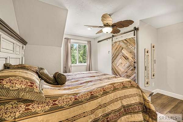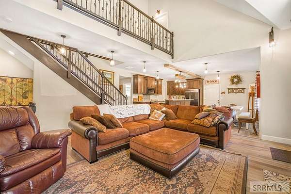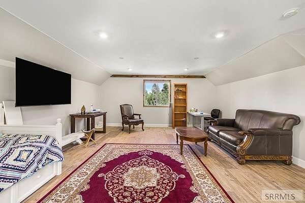 Escape to your own private retreat in the aspens! This stunning log-style cabin sits on 15 secluded acres in the Bone area and borders state land-ideal for snowmobiling, hunting, horseback riding, and more. Tucked in nature's beauty, the cabin offers a spacious open-concept layout with a large kitchen and dining area that flows into a vaulted great room, perfect for gathering. The main floor features a mud/laundry room, half bath, and dedicated pantry, along with a luxurious primary suite complete with French doors to a private patio, a garden tub, dual sinks, and a walk-in tile shower. Upstairs you'll find a dramatic overlook catwalk, three generously sized bedrooms, a full bathroom, a massive bonus room, and a hidden play nook. The full basement offers room to grow and finish to your liking. Fiber optic internet is already in place throughout. Winter access is snow machine only-perfect for the adventurous at heart. Just 25 miles from Idaho Falls, this peaceful getaway blends comfort, space, and outdoor adventure.