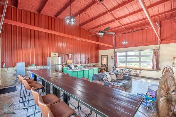 Absolutely stunning escape in the highly desirable Mulberry Canyon! This gorgeous ranch features two separate living quarters, joined by an incredible party room with full kitchen, bar, seating, and some of the best views in Taylor County. This property features three large stock tanks, well water, plenty of tree coverage and tons of wildlife! This truly is the perfect place for quiet and beautiful country living or recreational getaway. All fencing and roads have been very well maintained! This place has no projects needing to be done before it is ready to enjoy!