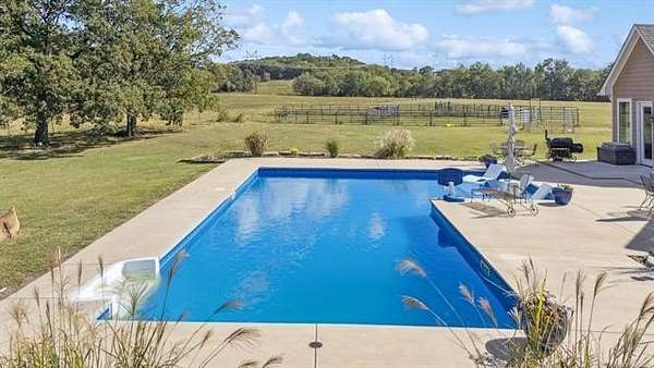 STOP SCROLLING! This RARE opportunity is one you don't want to miss out on! Discover the perfect blend of comfort, craftsmanship, and countryside living in this custom-built, one-owner home set on 37 picturesque acres of rolling pasture and wooded terrain. This 3-bedroom, 3-bath residence welcomes you with beautiful hand-scraped hardwood floors and an inviting open-concept design that's filled with natural light from expansive windows overlooking your private acreage. The spacious primary suite offers a serene retreat with a large ensuite bath, perfect for relaxation after a day outdoors. The thoughtfully designed floor plan provides both comfort and functionality, ideal for entertaining or quiet evenings at home. Step outside to your personal oasis featuring an inground pool and 6 person hot tub, surrounded by the peaceful beauty of the countryside. The SHOP is such a plus! 30x50, insulated walls and doors, 110 AND 220 electric ~ hook ups for a compressor, welder, AND RV. Whether you're enjoying the wide-open pasture, exploring the wooded trails, or simply taking in the views, this property offers endless opportunities to live, work, and play. You will LOVE the location! Close to EVERYTHING, yet the most private, peaceful setting.