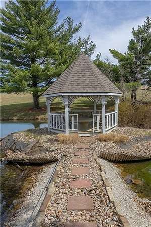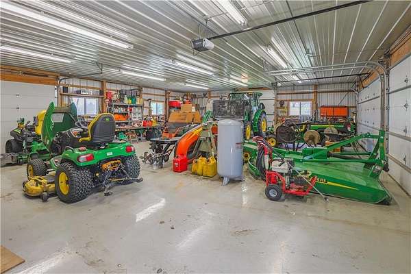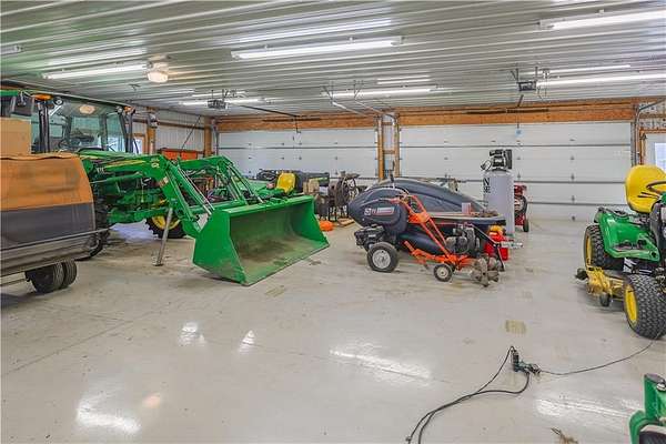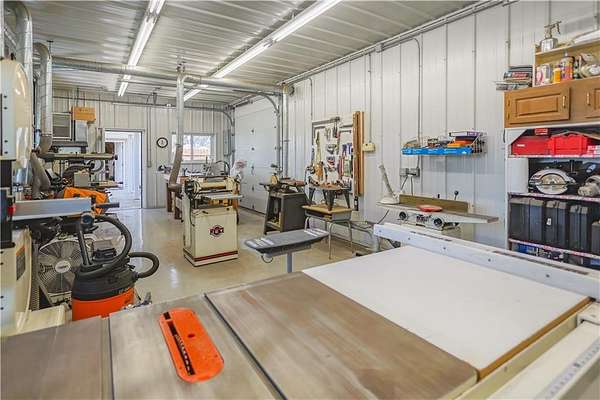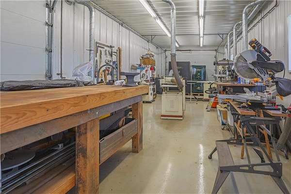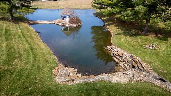 Magnificent one-of-a-kind setting! A long concrete driveway leads to this beautiful ranch home with an oversized 3-car attached garage and finished basement, all overlooking 18.13 acres with breathtaking views of a large fishing pond complete with gazebo. The back deck and patio create the perfect space for entertaining, featuring a built-in BBQ grill and peaceful surroundings. Home offers 4 bedrooms plus a non-conforming 5th bedroom, 3.5 baths, vaulted ceilings, and a unique fireplace in the living room, along with a second fireplace in the finished family room. The kitchen is well-appointed with abundant cabinetry, pantry, Corian countertops, and a casual dining area, plus a separate formal dining room large enough for gatherings. Property also includes an impressive 36x60 insulated outbuilding with multiple garage doors, a 35x14 heated and cooled workshop area, ample electrical, and air lines throughout. A second 36x24 outbuilding offers concrete floors, attic storage, and a lean-to for additional versatility. This property is truly a rare find offering space, function, and incredible views!