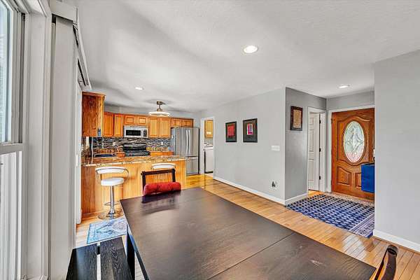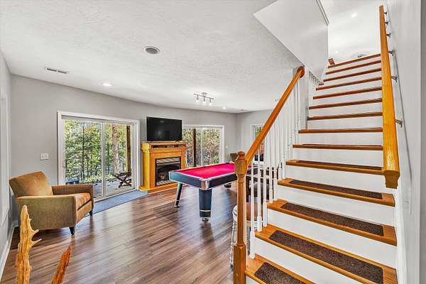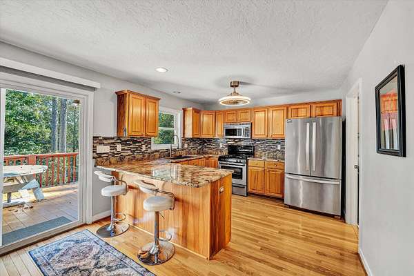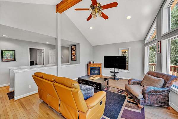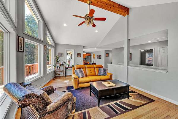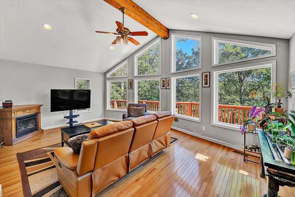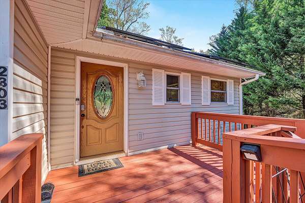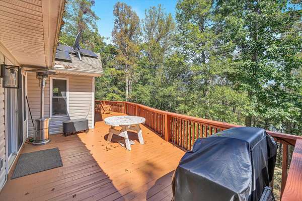 Est $3,067/moPrice adjustment! Take advantage of this opportunity to own a beautiful- Furnished ready to move in home on Leesville Lake! A 2.3 acre wooded lot-low maintenance-Spacious home with lake views from every room and potential income if you choose to rent. Solar to offset electric bill! Features 3 bedrooms and an office and 3 full baths. Outside entertaining on the full length deck both upper and lower levels. The kitchen has granite counters and includes stainless appliances. Open floor plan, vaulted ceilings. propane fireplace each level, lower level kitchen area with cabinets and sink Detached garage , floating dock , kayak storage area at water's edge.