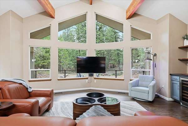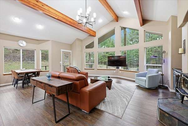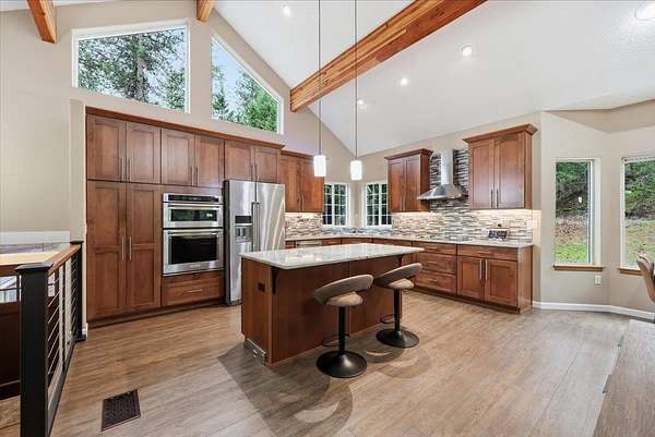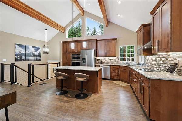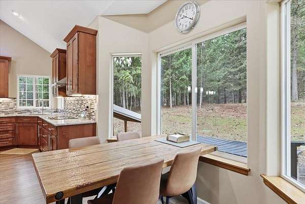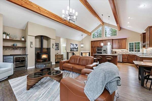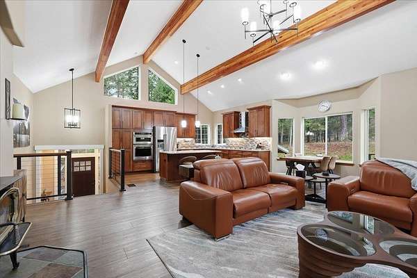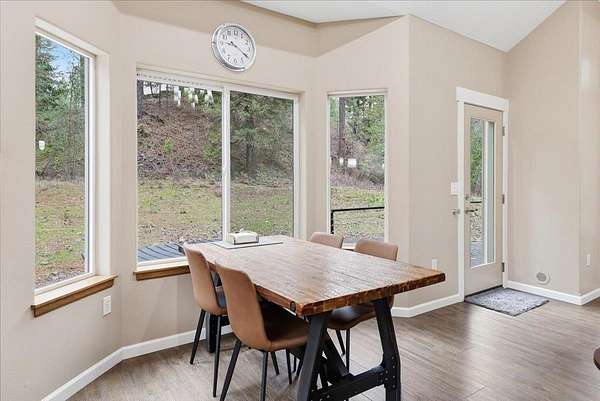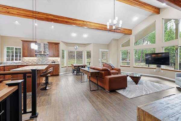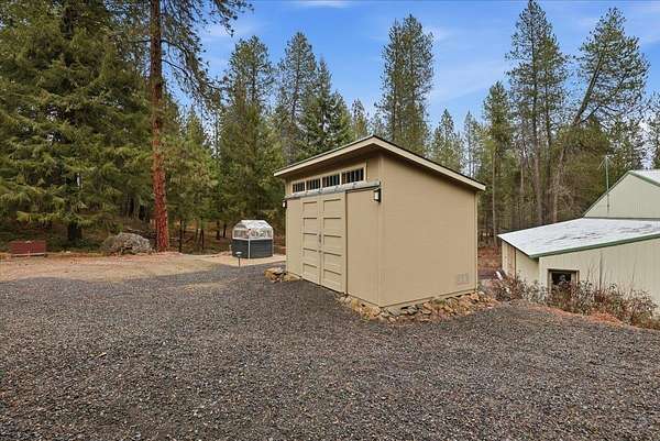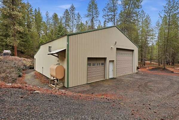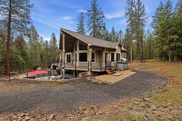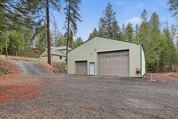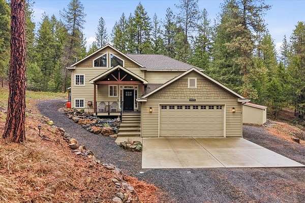 5 acre, park-like estate w/ 30x42 shop. 3 bedrooms, 3 bathrooms, meticulously maintained Northwest Custom Craftsman home, professionally updated kitchen & bathrooms. Main level features great room, wood fireplace, cathedral ceilings, exposed beam detail, soaring windows for gorgeous territorial views. Spacious owner's ensuite bedroom, bathroom w/dual vanity, shower, walk-in closet, private deck access. Kitchen features modern updates, Huntwood cabinetry, granite countertops, SST appliances. Daylight basement offers large entertainment area w/wood fireplace, 2 bedrooms, full bathroom & access to spacious patio w/ hot tub & covered grill area. Home automation system. Forced air heat/AC. 30x42 heated shop, standard & RV-height doors, air compressor & vehicle lift. 16x42 enclosed lean-to. 10 GPM private well. Year-round wildlife, .30 mile groomed trail, 3 basket disc golf course, fire pit, and wood shed. Your private estate awaits, just 30 mins commute from downtown Spokane!