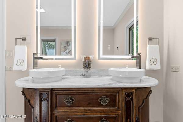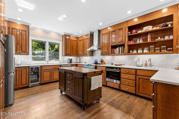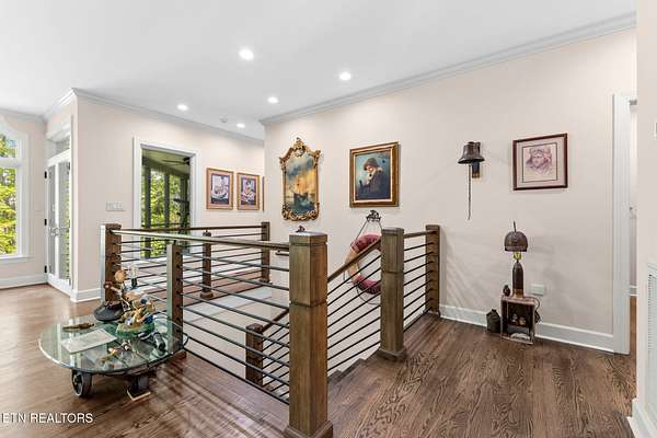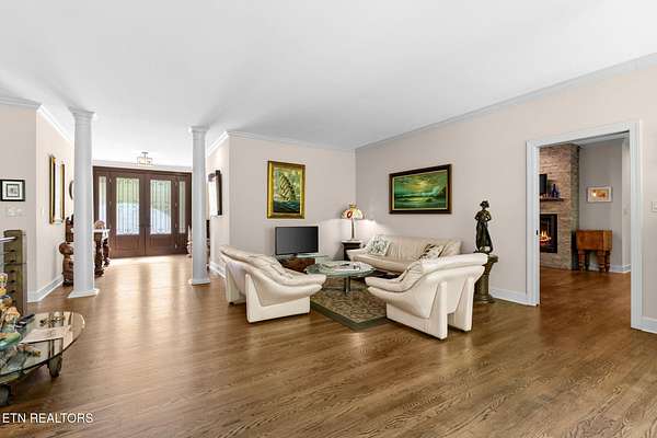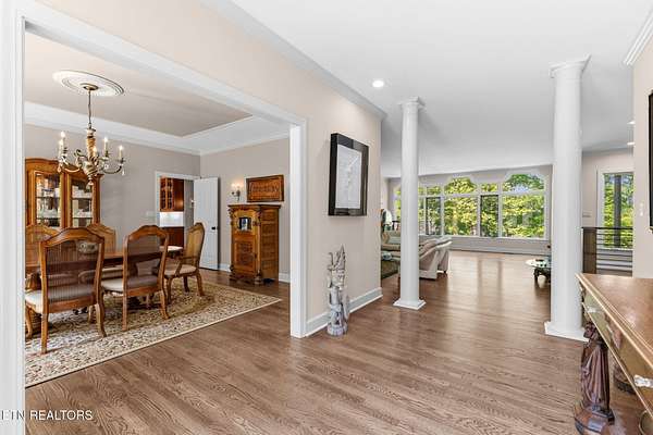 Excellent opportunity! Handsome, custom built lakefront estate on almost 2 acres! A private wooded nature sanctuary with 200 feet of lakefront on Fort Loudon main channel. Rare privacy with amazing view in desirable Lakemoor Hills. Minutes to UT medical Center, downtown, private and international airports. Enter through Castle doors to open floor plan with high ceilings, all new gleaming wood floors and great room with large windows to capture lake views. Grand kitchen boasts custom maple cabinets, updated appliances, quartz countertops, island, beverage cooler with keeping room with a cozy fireplace. Formal dining room off kitchen. Ideal for entertaining large or intimate groups in the massive game room or music room with magical views and includes beautiful stone, wood-burning fireplace and hidden bar. Opens to new deck with gas fireplace for quieter evenings. Main level spacious primary wing captures majestic lake views, spa like bath with free standing air jetted tub, separate shower and Kessel lavatories. Separate private screened and covered porch to enjoy morning coffee or evening relaxation. An office with built-in bookcase or additional bedroom also on main level. Two stairwells lead to the lower level that has been completely renovated and is a secondary living quarters for parents, teenagers or live-in help. New kitchen with granite countertops. Stainless appliances include dishwasher, microwave, and refrigerator. Three spacious bedrooms, large rec room, two full baths and walkout basement to landscaped patio. Owners have lovingly maintained this masterpiece with too many updates to include.... Roof, septic, HVACs, lighting, fans and mirrors, hardwood flooring on main, paint, kitchens and more. Lovely established neighborhood boasts a park, boat launch, tennis courts, and pickleball court. Boat dock permit on file with TVA.