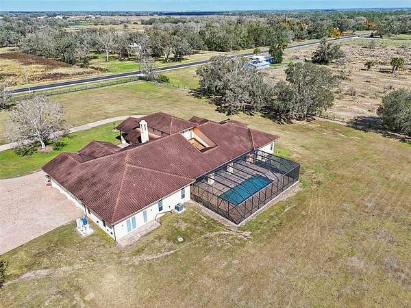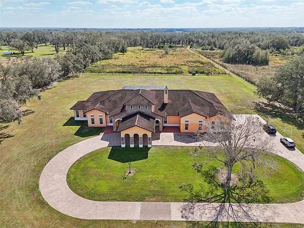 A Truly Exceptional Estate on Over 17 Acres - A Florida Paradise! Are you ready to escape the hustle and bustle of city life? This extraordinary estate offers more than just a home - it's a lifestyle. Nestled on 17.7 meticulously manicured acres, this stunning property is designed for both relaxation and entertaining, making it the perfect sanctuary. As you drive through the grand, gated entrance, you'll be greeted by lush, expansive grounds that exude privacy and tranquility. This magnificent residence features 6 Bedrooms, a spacious Office, and an expansive gourmet kitchen that seamlessly flows into the inviting family room and cozy breakfast nook. Step outside to discover an oversized screened-in pool, surrounded by ample space to embrace the quintessential Florida lifestyle. The formal living room showcases a breathtaking stone fireplace, creating a warm and welcoming ambiance. The Master Wing is a private retreat with a grand master bedroom, custom his and her closets, and a lavish master ensuite. Indulge in the large walk-in shower or unwind in the soaking tub, perfect for a relaxing bubble bath. This estate also features 4.5 bathrooms, offering ample space and luxury for family and guests. The back portico is ideal for outdoor dining and cookouts, with room for entertainment and enjoyment. Wander through the lush grounds to discover a serene pond, surrounded by Florida's native fauna, enhancing the natural beauty of the estate. This property offers more than just a home; it's an experience. With a beautifully paved colonial-style driveway, a spacious 5-car garage, and a layout that evokes the charm of a Spanish villa, this home is a true masterpiece. Whether you dream of raising animals or simply enjoying the vast open space, this estate provides the perfect opportunity for both. Sold fully furnished, this home comes with luxurious wooden furniture and exquisite hand-crafted beds, along with an extensive collection of valued paintings that add an artistic touch. Additionally, you'll find handyman equipment, including a 4x4 golf cart for easy navigation across the estate, and a trimmer to maintain the grounds. This is more than a property; it's a rare opportunity to own your own private paradise in Florida. The lifestyle you've always dreamed of awaits. Make this estate your home today, where luxury meets comfort and nature surrounds you at every turn. Don't miss out - schedule your private tour today and experience the elegance of this extraordinary estate!