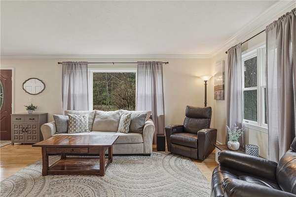 This is the house you have been waiting for. It has been so well-maintained that you can't believe anyone has been living here. And they haven't just maintained it. They have improved virtually every room in the house, a little bit at a time. And the improvements didn't stop there. They also added a swimming pool in the backyard, paved the long driveway, and added more landscaping and trees/shrubs to the 2+ acres of land around the house. It has been professionally maintained and adds to the curb appeal of a great house. And, even though the house sits on more than two acres, it is just a five minute drive to Dunkin Donuts on Denison Parkway in Corning and less that ten minutes from Wegmans. That's pretty convenient! The gourmet Kitchen is a chef's delight featuring refreshed cabinetry, a dedicated pantry, a center island with a breakfast bar, and premium quartz countertops. There is even a breakfast nook, overlooking the deck and backyard. The layout includes a formal living room, a dining room, and a cozy family room equipped with gas logs and a custom built-in entertainment center. The owner's Suite is a stunning retreat with a large walk-in closet and a high-end primary bathroom. The lower Level offers a versatile bonus room (currently used as an exercise room) and a well-appointed laundry room. Thus might be the nicest laundry room you've ever been in. Throughout the home, you'll find hardwood floors, crown molding, and custom-organized closets. Storage & Parking: A large garden shed provides extra storage, and the property features a clean, finished two-car garage.