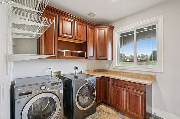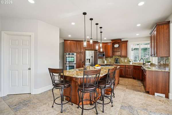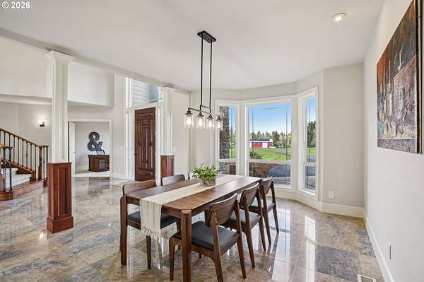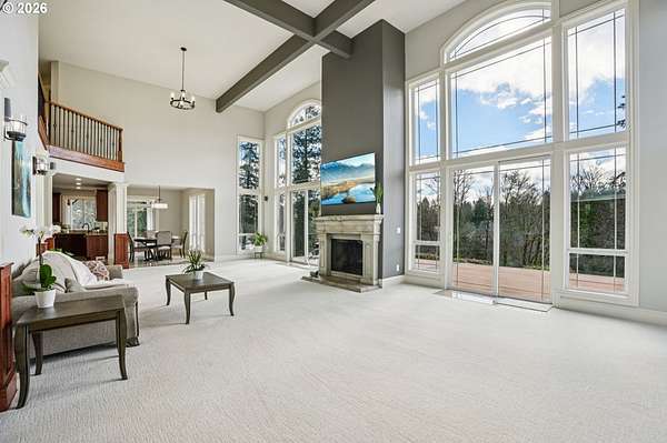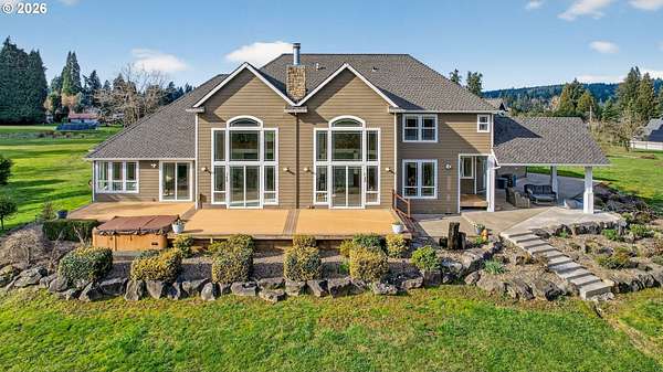 Experience refined Northwest living in this extraordinary, single owner, custom property set along the serene banks of the Tualatin River. Spanning 6.04 private acres across two tax lots, this rare riverfront property offers a blend of luxury, natural beauty, and architectural character.A grand entryway with a dramatic helical staircase welcomes you into a home designed to impress. Inside, soaring floor-to-ceiling windows flood the living spaces with natural light while framing peaceful views of the surrounding landscape. Exposed beams, elegant finishes, and thoughtfully designed spaces create a warm yet sophisticated atmosphere throughout.The gourmet kitchen is a centerpiece for entertaining, featuring stainless steel appliances, rich cherry wood cabinetry, and marble flooring, combining timeless style with modern functionality. The main-level primary suite provides comfort and convenience, while the upper level offers three additional bedrooms and a spacious bonus room, ideal for guests, recreation, or a private retreat.Recent updates-including new carpet, new furnace, and newer interior/exterior paint-ensure a move-in ready experience. A three-car garage adds convenience, while the expansive acreage provides endless possibilities for outdoor living, recreation, or future expansion.With its rare riverfront setting, impressive architectural details, and expansive grounds, this property offers a truly exceptional opportunity to enjoy luxury living in one of the region's most picturesque environments, only minutes away from Willamette Village, shopping, and restaurants.