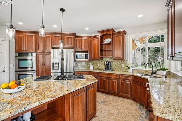 - Cooktop, Dishwasher, Double Oven, Down Draft, Free Standing Refrigerator, Gas Appliances, Granite, Island, Pantry, Plumbed For Ice Maker, Stainless Steel Appliance