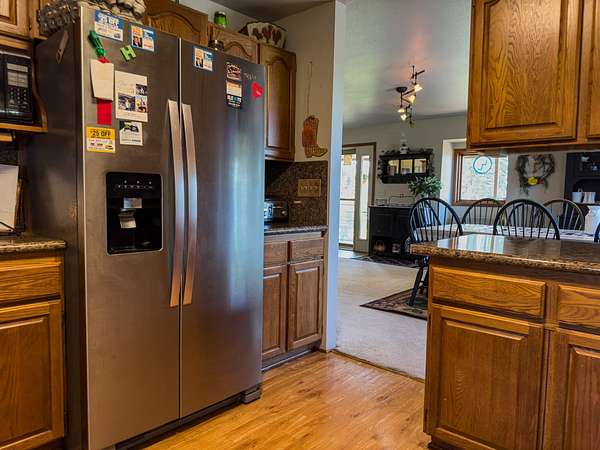 The property is shaded by mature pine and cottonwood trees, creating a peaceful and private setting. Deer and elk frequently pass through, despite the high-fence perimeter. Access is via a shared driveway, offering privacy and seclusion without isolation.