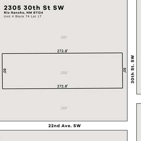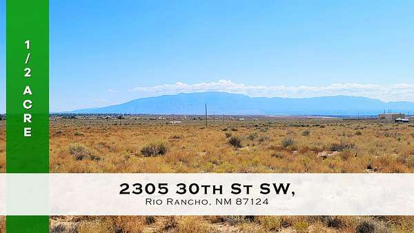 Est $93/moLive off the grid, but close enough to civilization for convenience and practical purposes. This 1/2 acre parcel of land in Rio Rancho is located a mere 9 minute drive from Southern Blvd. Mobile homes are permitted (check with Sandoval County for minimum criteria). The property has a wide 80' front line with a 272' side line. Buyer will need to verify availability/distance/cost to connect to utilities and available build options. Request the 360 degree video. Owner/Broker.